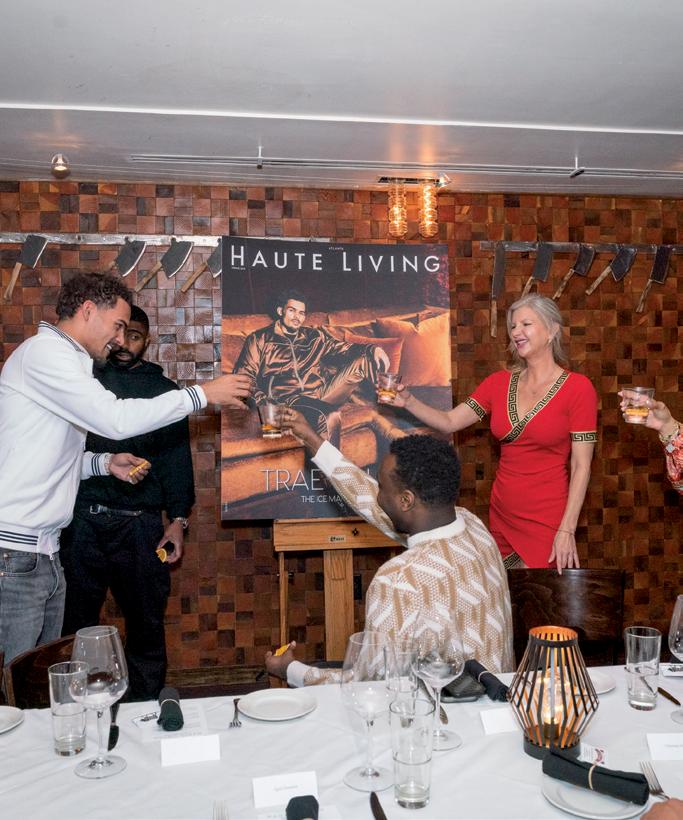 ON MARCH 23, HAUTE LIVING HEADED TO ATLANTA TO CELEBRATE the two-time NBA All-Star and face of the Atlanta Hawks franchise, Trae Young, and his recent Haute Living cover. The 24-year-old athlete was joined at the intimate dinner, held at the Little Alley Steak in Buckhead, by friends including Chase McMillan, Max Hazzard, and R.J. Fuqua. Before the dinner commenced, he was toasted by Haute Media Group Senior Vice President April Donelson, who spoke about his greatness on and of the court, saying, “You are the future of the NBA. It is such an honor to have you gracing our cover.” Young briefy shared how great the experience was before guests sat down to dinner. The menu at the high-end steakhouse included wagyu beef meatballs, veal demi-glace, garlic-chili vinaigrette Moroccan-style shrimp, Batbout fatbread, Caesar salad, barrel-cut flet, Angus beef, New York strip, wild king salmon, Springer Mountain chicken, Brussels sprouts, French green beans, and triple cream mac and cheese. Notable attendees included Samori Bolds, Yvonne Yancy, Cassius Butts, Stevie Baggs, Jeremy Haynes, Noel G. Jeremy, Crystal Renee, Tramiel Golden, and Sarah Vivien.