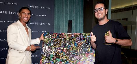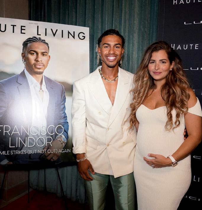 FRANCISCO LINDOR JOINED HAUTE MEDIA GROUP AND Lucid Motors for a magical evening at ucca Miami. Despite a quarterfnal elimination at the recent World Baseball Classic, Mr. Smile had plenty to be excited about. The New York Mets shortstop was welcomed with open arms at Zucca Miami to celebrate his Haute Living cover as a new MLB season kicked of. Lucid Motors partnered with Haute Media Group, along with MG Developer and Zucca, and created the perfect atmosphere to celebrate one of the MLB’s biggest stars. Guests, from Haute leaders to Coral Gables Mayor Vince Lago and opera singer and designer Radmila Lolly, enjoyed an eclectic cocktail list and wine options ahead of an unforgettable meal. Manuel Garcia, head chef at Zucca, curated an exquisite menu for the illustrious crowd, with a creamy burrata dish, wagyu carpaccio, and fried zucchini fowers to start. “Primi piatti” (or “frst dishes”) included a risotto and short rib ragu. The options for “secondi piatti” were a sea bass flet or a grilled Angus flet mignon. For dessert, guests chose between the house tiramisu and a chocolate rotolo with pistachio ice cream. In one of the evening’s most memorable moments, Miami-based artist Vic Garcia presented Lindor with a custom piece, replete with career achievements and milestones. Notable guests included Haute Media Group Senior Vice President April Donelson, Alírio Torrealba, Dorys Torrealba, Diego Torrealba, Robert Elias, Dr. Jose Rodríguez-Feliz, Sandra Fiorenza, and Erasmo Da Silva.