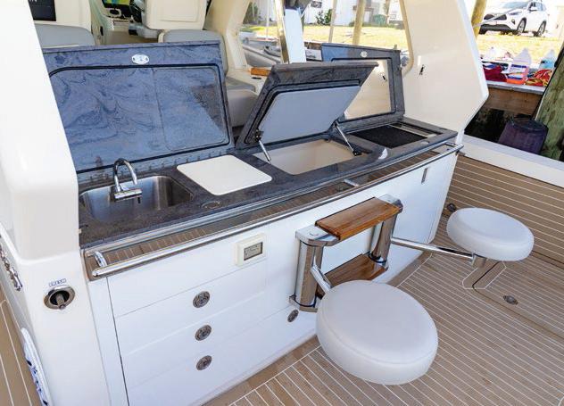 The Scout 530 LXF was designed with sophisticated entertaining in mind. The expansive cockpit features a full wet bar with slide-out stools, Kenyon electric grill, Isotherm freezer drawer, icemaker, and premium sound system. Whether you’re hosting an elegant evening gathering or a day of worldclass fishing, every detail has been considered. Experience this extraordinary yacht in person by arranging a private viewing and sea trial.