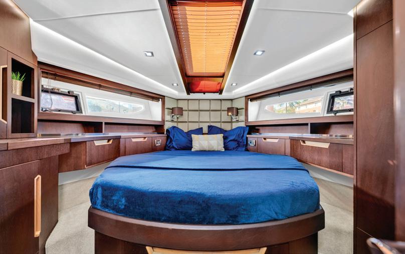 Offered at $459.000. Galeon extended and refreshed its mid-range segment with a hardtop variant of the acclaimed 420 FLY. The main focus of the design was to flawlessly integrate a bright and welcoming interior with the sporty and dynamic character of the 430. The forward-facing glass roof effortlessly slides back yet is quick to close if the weather gets harsh. Notice the single sliding, glass panel over the cockpit area as well as the patio doors granting easy access to the saloon. The aft-facing loungers will slide when needed, creating either a great dining or leisure area at the stern. The main deck boasts plenty of space and features a dining table, sitting areas, a well-equipped helmsman’s station and a galley. Similar to the 420, the sliding bed raises the number of berths to a class-leading eight. The plethora of interior design options allow for the yacht to be fully customized. Three bedrooms down below provide ample headroom and make use of two separate bathrooms for optimum comfort and privacy. The 430 features a stylish, relaxing interior thanks to high-quality fabrics, luxury fittings and top-of-the-line equipment.