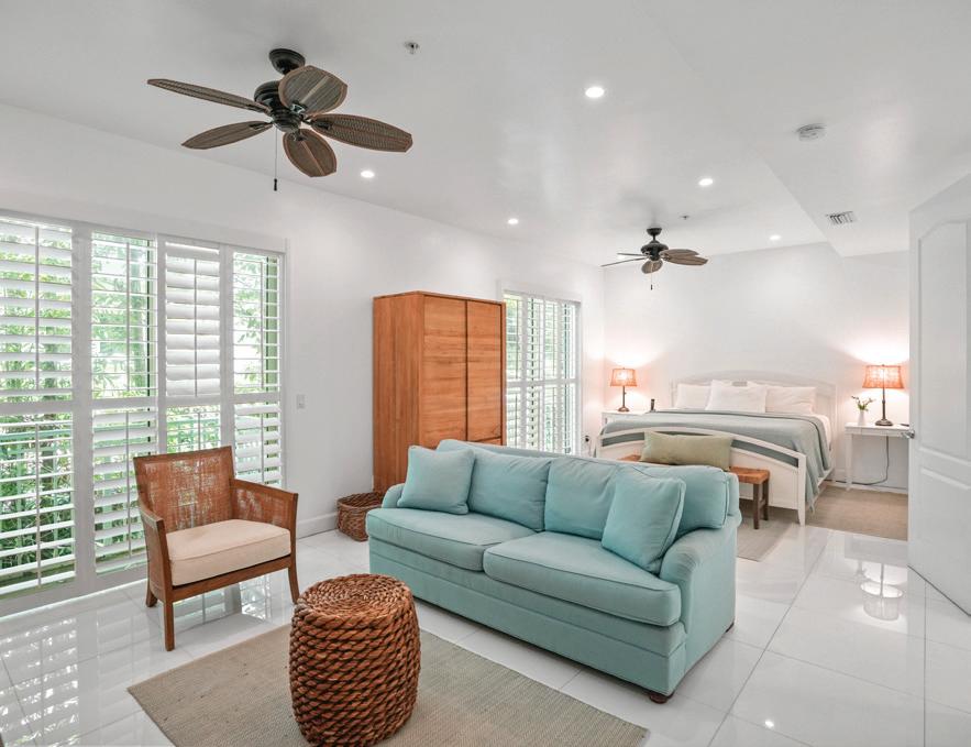 Le Paradis is designed to offer a self-contained luxury resort experience, featuring six elegantly appointed guest suites, each with spa-inspired en-suite baths, custom builtin closets and perfectly framed vistas from expansive floor to ceiling windows. The estate boasts an infinity-edge salt water pool and whirlpool spa, sprawling indoor and outdoor entertaining areas, and a private wellness center complete with a fitness suite, spa, and meditation spaces. A state-ofthe-art home theater and two large executive offices make this estate equally suited to those looking for a vacation home or considering a relocation to the USVI in order to participate in one of its many tax incentive programs. Designed for effortless hospitality, the property includes dedicated staff accommodations and is one of the only residences on St. John to feature a private elevator, quietly connecting all levels of the home with effortless ease.