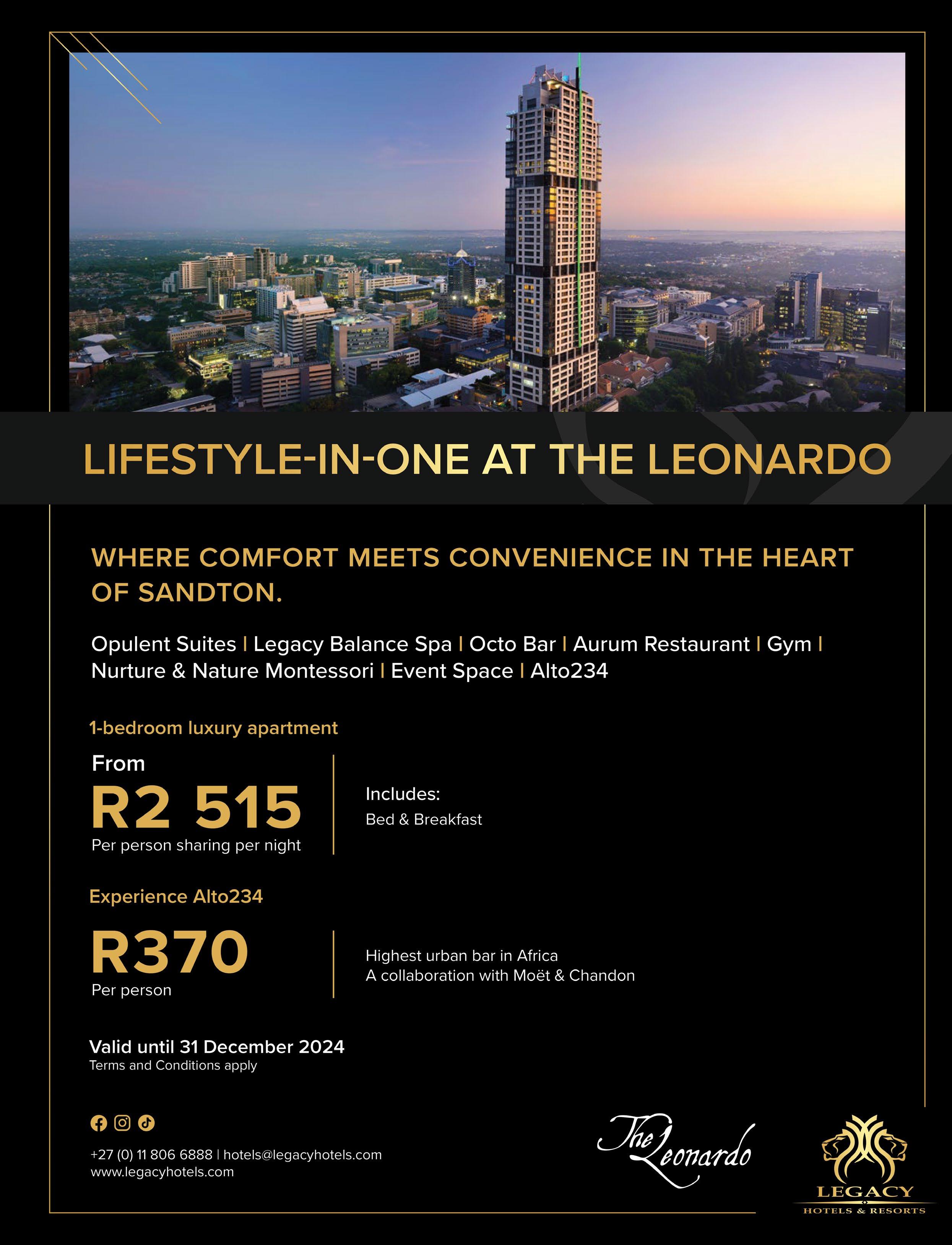 WIN a two-night stay at the Steyn City Hotel by Saxon, valued at R18 000. To learn more, scan the QR Code or visit our competitions page on www.hellolifestyle.co.za.
