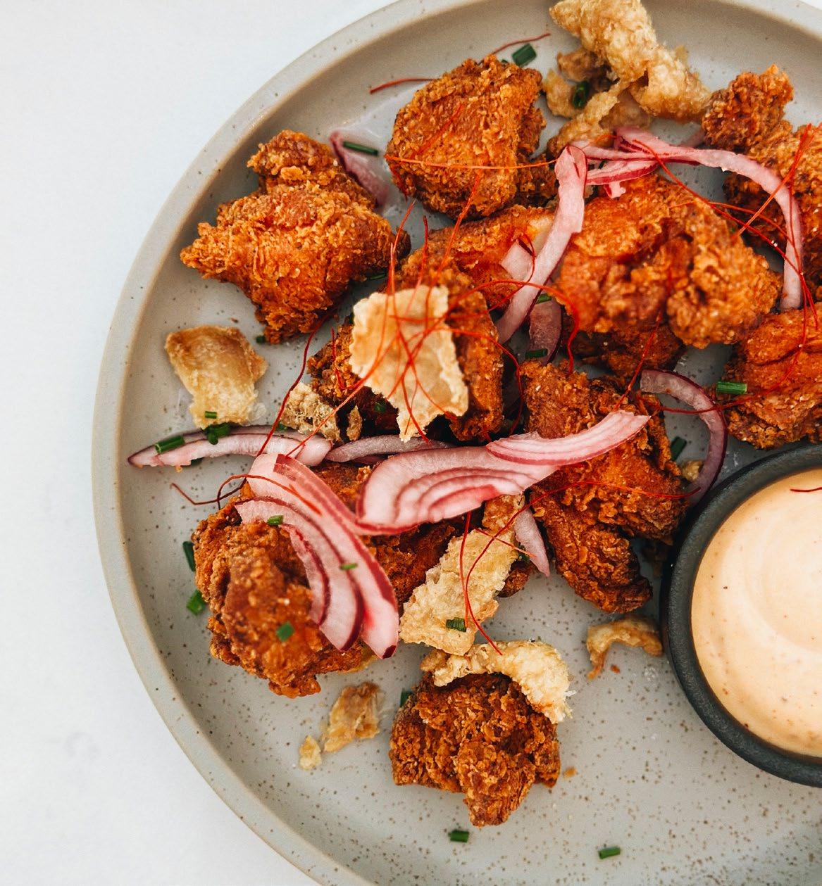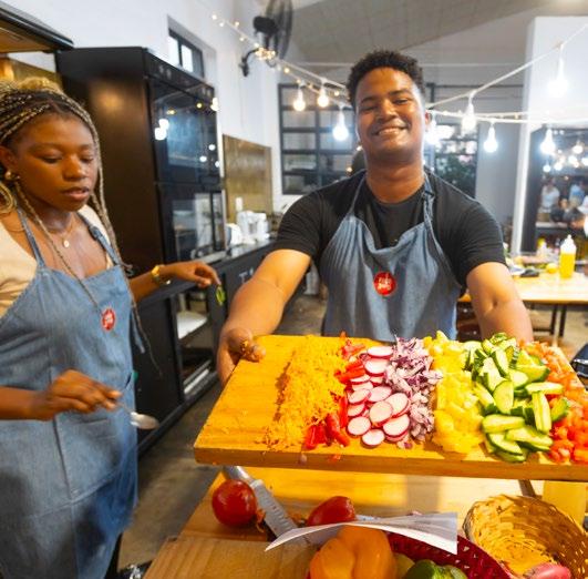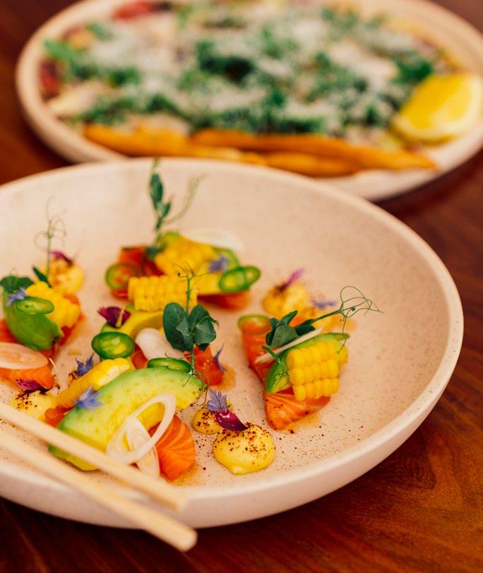 Nestled in Salt Rock, The Grand Exotic offers a nostalgic escape with its lush gardens and vibrant colours. Inside, visitors get to admire the hand-painted glass and the artwork beneath a soaring dome, or merely relax on the covered veranda which overlooks a serene garden with ferns, flowers and a charming water feature. Enjoy singleorigin coffee and tea served from silver tea pots and vintage porcelain, alongside a simple, yet delightful all-day menu. Our breakfast favourite is the Grand Benedict Exotic - corn fritters with crispy bacon, avocado, sautéed mushrooms, poached eggs and Hollandaise. Don’t miss the vintage shop brimming with treasures - from beautifully carved doors and French country décor to delightful collectables, vintage jewellery, wonderful gift ideas and a large collection of magnificent vintage silk saris.