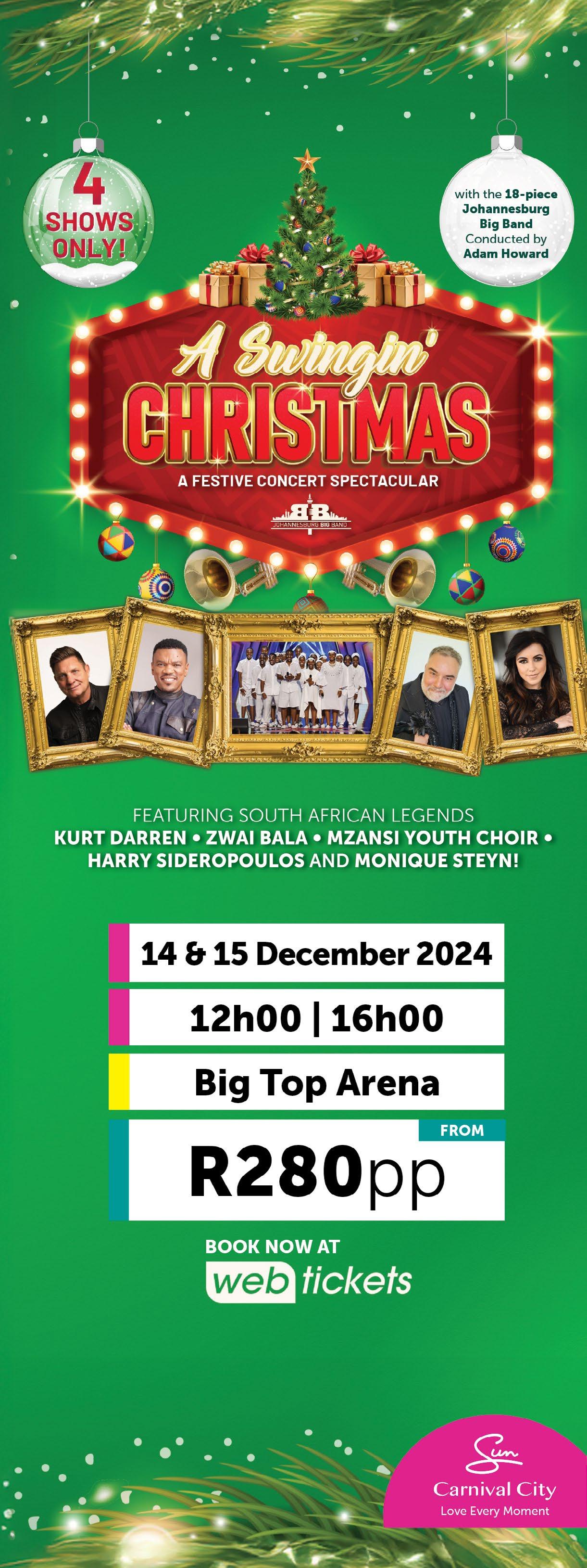 What to expect: Watch as the stage lights up in holiday spirit with the Johannesburg Big Band, Kurt Darren, Kwai Bala, Harry Sideropoulos, Monique Steyn and the Mzansi Youth Choir. This show promises to capture the magic of the season in December, leaving you feeling merry and bright. There will only be four performances, so be sure to book your tickets soon!