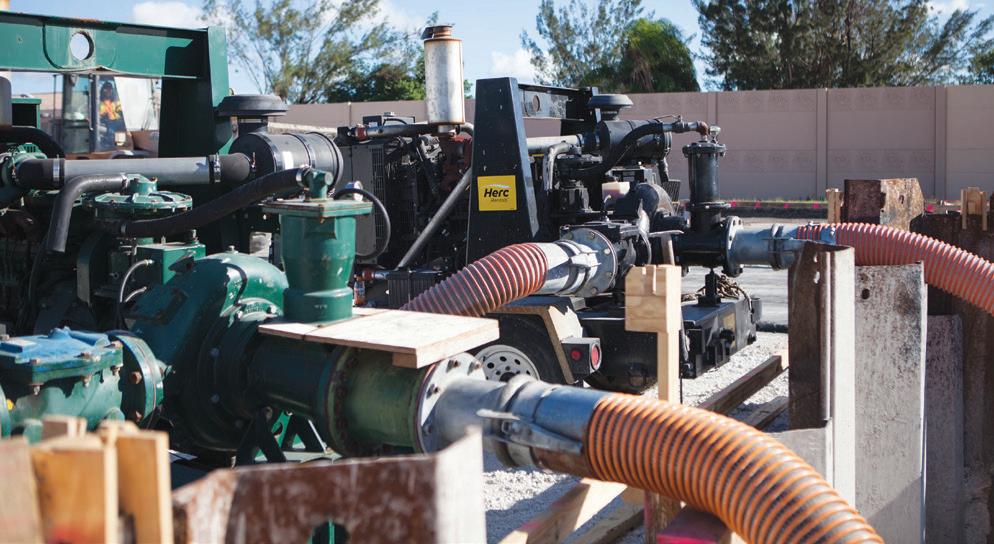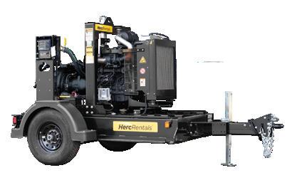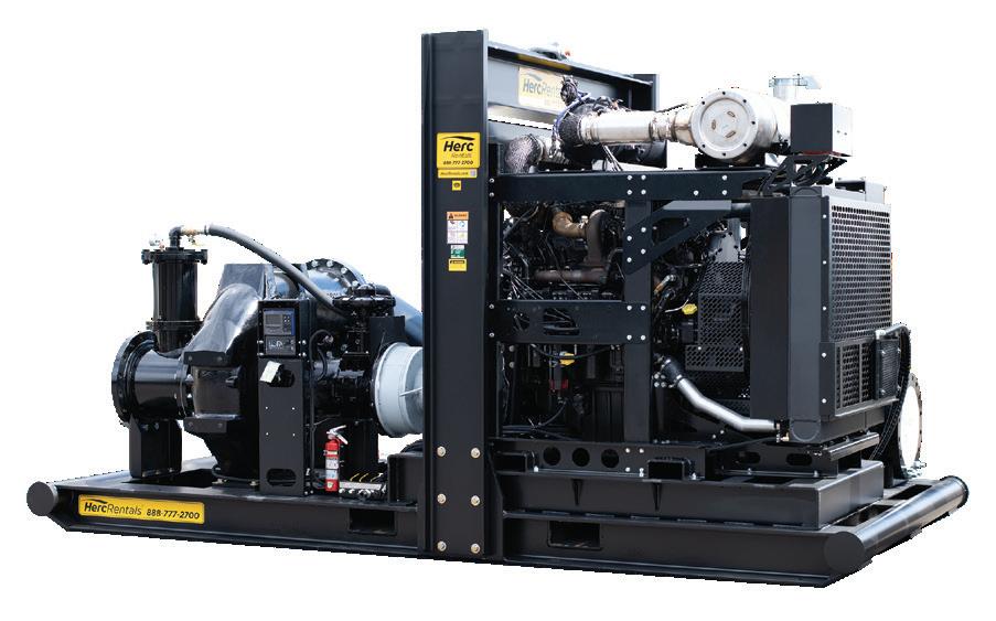 Call 888-777-2700 for rates and reservations HercRentals.com 42 PUMPS STAINLESS STEEL DIESEL PUMPS Features include: • 24-hour running fuel capacity • Produce enough pressure to eliminate need for series pumping • Safety shutdown switches 7,300 GPM MAX FLOW Designed to efficiently and effectively handle a variety of liquids and offer a higher head rating than most trash pumps. HYDRAULIC PUMPS Features include: • Residential muffler • Automatic oil pressure/temperature safety shut down • Submersible pump head options 5,750 GPM MAX FLOW Designed for dewatering mines, quarries, and other high suction lift applications. WELL POINT PUMPS Features include: • High-efficiency performance • Diesel and electric options • Integral fuel tank designed for 24-hour operation 2,200 GPM MAX FLOW Designed to handle large volumes of water and air. MAKE MODEL DESCRIPTION MAX FLOW AIR MOVING CAPACITY MAX FUEL CONS CAT-CLASS Thompson 6PW-DHS-1D90E-SK 6 in Piston Pump (Enclosed) 400 gpm 53 cfm 0.4 gph 806-1650 Thompson 8RW-DDS-3.6-X 8 in Rotary Wellpoint Pump (Open) 1,750 gpm 275 cfm 4.48 gph 806-1675 Thompson 8RW-DDS-3.6-XC 8 in Rotary Wellpoint Pump (Enclosed) 1,750 gpm 275 cfm 4.48 gph 806-1680 Thompson 12R-DDS-3.6-X 12 in Rotary Wellpoint Pump (Open) 2,200 gpm 400 cfm 4.48 gph 806-1690 MAKE MODEL DESCRIPTION MAX FLOW SOLIDS HANDLING MAX FUEL CONS CAT-CLASS D&D 4SSS44 4 in Stainless steel sludge pumphead - 44 gpm 900 gpm @ 20 in TDH 3 in N/A 811-2270 D&D 4S44 4 in Sludge pumphead - 44 gpm 900 gpm @ 20 in TDH 3 in N/A 811-2280 D&D 6S44 6 in Sludge pumphead - 44 gpm 2,150 gpm @ 20 in TDH 3 in N/A 811-2310 D&D 8T44 8 in Trash pumphead - 44 gpm 2,750 gpm @ 20 in TDH 3 in N/A 811-2320 D&D 12T96 12 in Trash pumphead - 96 gpm 5,750 gpm @ 20 in TDH 4 in N/A 811-2340 D&D 400DTR 65 hp John Deere, 400D Power unit, trailer-mounted N/A N/A 2.8 gal/hr 814-2633 D&D 800DTR 200 hp John Deere, 800D Power unit, trailer-mounted N/A N/A 7.3 gal/hr 814-2640 MAKE MODEL DESCRIPTION MAX FLOW MAX HEAD SOLIDS HANDLING MAX FUEL CONS @ 1,800 RPM CAT-CLASS Pioneer PP44S10L2-D2.9L4 4 in Pump vac assist SS 1,470 gpm (334 m3/h) 114 ft 3 in 2.04 gph (7.7 L/hr) 803-1400 Pioneer PP66S12L2-TD2.9L4-GL 6 in Pump vac assist SS 2,840 gpm (645 m³/h) 182 ft 3 in