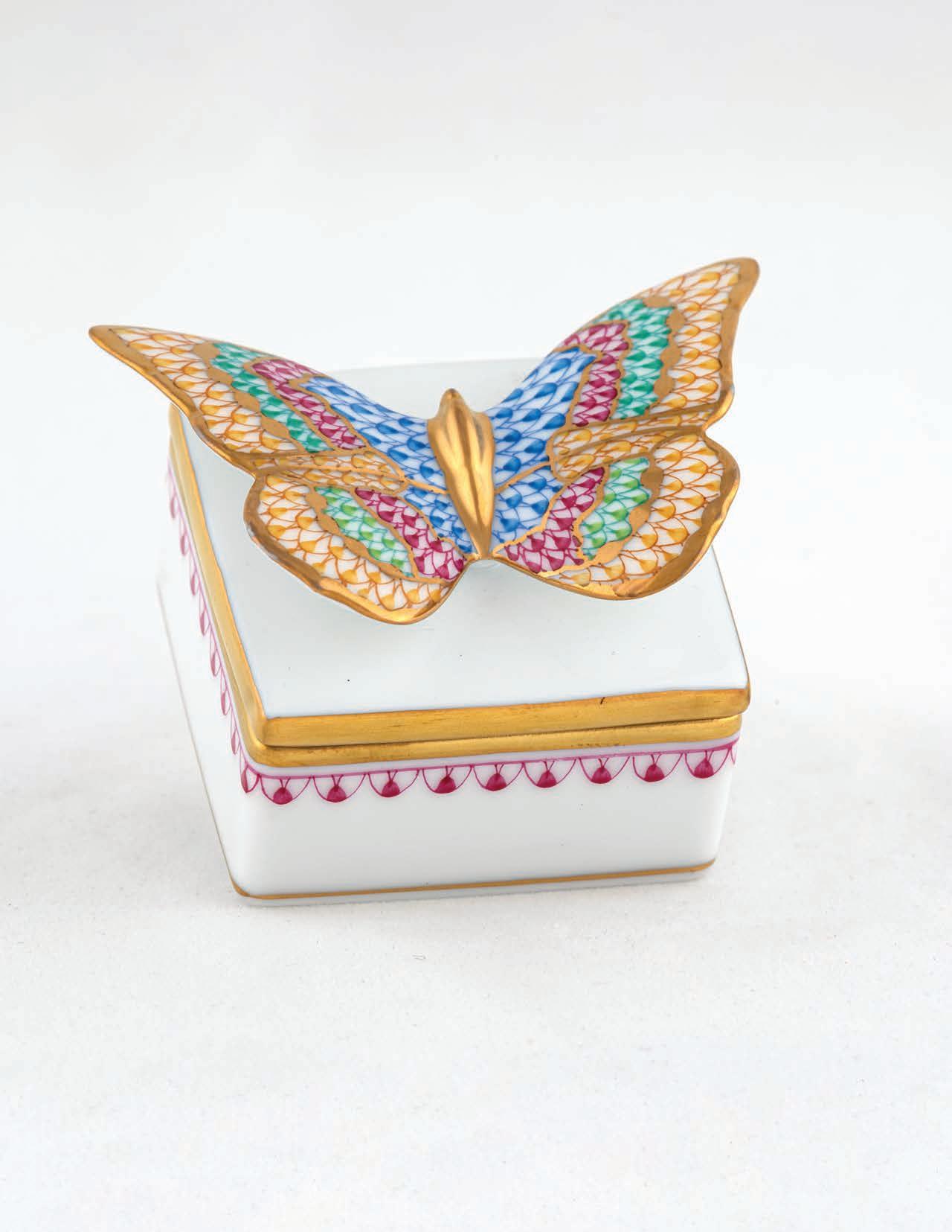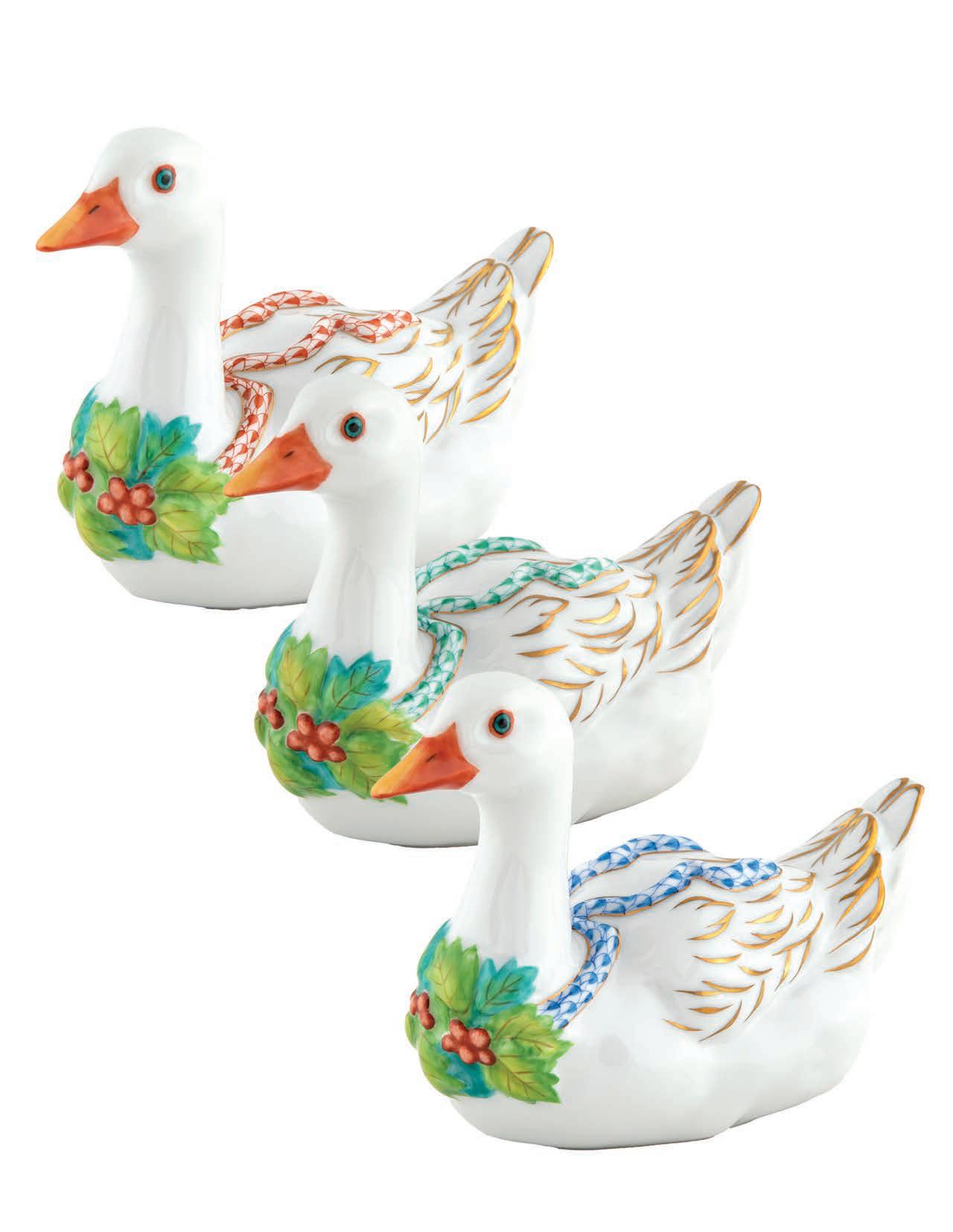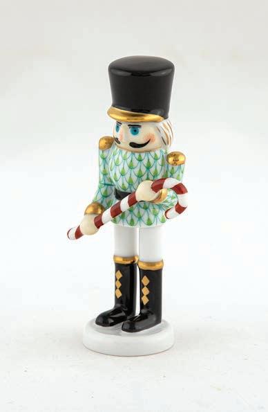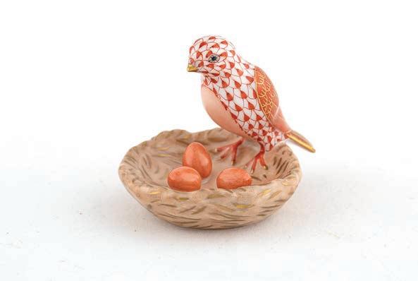 The American Kestrel may be North America’s smallest raptor but by no means does that diminish its abilities as a hunter as evidenced by those impressive talons. What it lacks in size the kestrel makes up in coloration since it is considered the most colorful of raptors. Often found perched on a wire or a pole, the kestrel will pump its long tail to keep its balance while scanning for an unfortunate grasshopper. The sculptors and painters at Herend had no desire to embellish such a dignified bird and beyond adding fishnet to make the kestrel one of their own, have adhered to nature’s composition and colors.