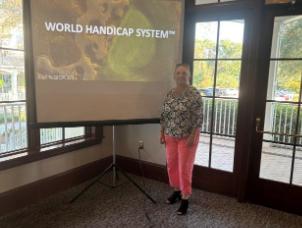 In October, the Ladies Golf Committee, guided by their new Handicap Committee, held a Handicap Meeting and Seminar in the member’s room at the club The Ladies Handicap Committee includes Amy Giglio, Joan Hazel, Maureen Korzik, and Phyllis Wibby. Special thanks to Amy and Maureen for providing the following notes from the meeting. The guest speaker, Clarissa Childs Executive Director of the WSCGA and an LPGA golf professional shared valuable insights on handicapping The seminar was well attended by both men and women golfers of the club.