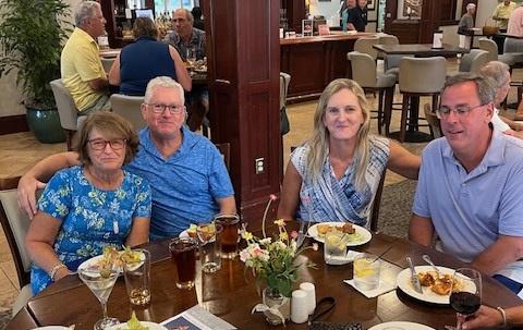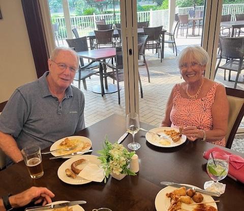 The group had lots of fun at lunch following golf and generous drinks provided by our hole-in-one star Liz's shot was directly at the pin and quickly disappeared into the cup Way to go Liz!