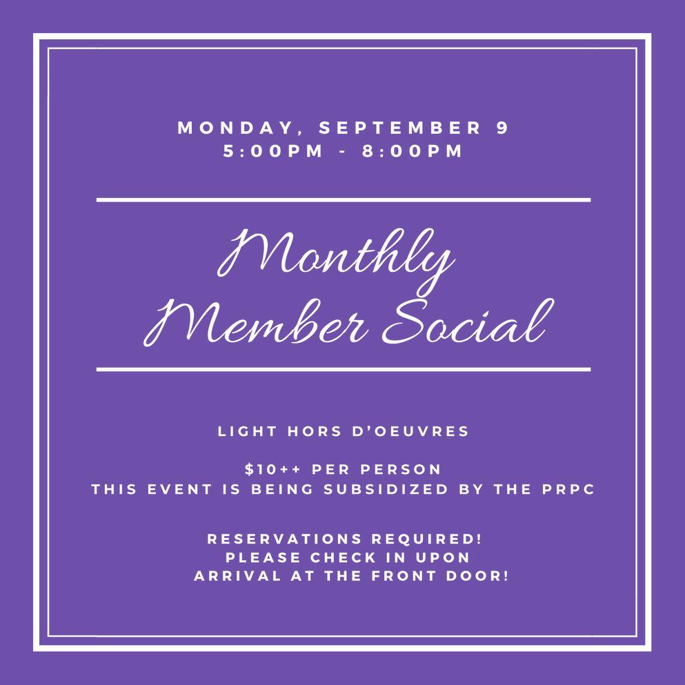 We will not have a “big event” planned for September due to the Heritage Invitational MemberGuest golf event; however, mark your calendar for Monday, September 9th for our Monthly Member Social. These monthly events continue to be very well attended and priced at $10 per person You can’t go wrong The Monthly Member Social was never designed to be a full meal It has always been meant to be appetizers and light bites We have occasionally been spoiled by the generous offerings, but please don’t expect that every month. This is a social event, not a themed meal event Happy hour bar pricing is in place