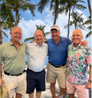 PicturedfromlefttorightisthewinningteamofJohn Dreyer,LannyBailey,PresidentJimWalker,and dapperNigelJoneswithanetscoreof57.Mostofthe remainingteamswerechasingtheseguyswithnet scoresrangingfrom60to64