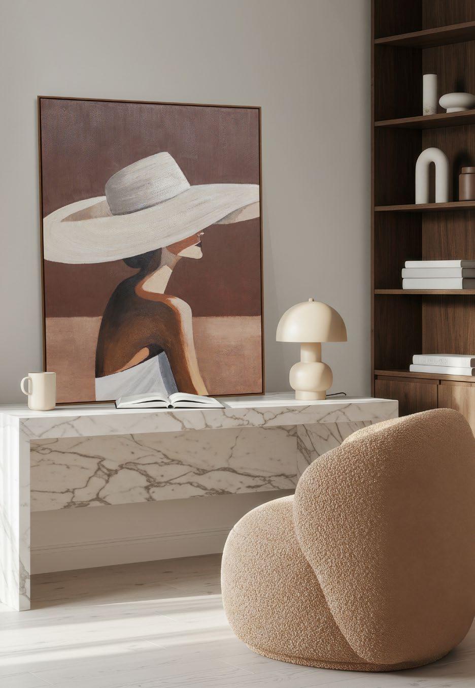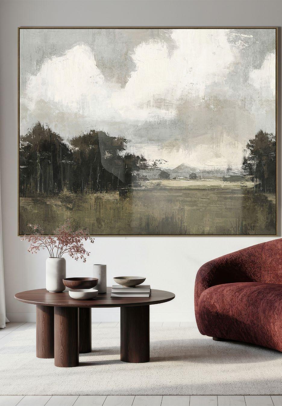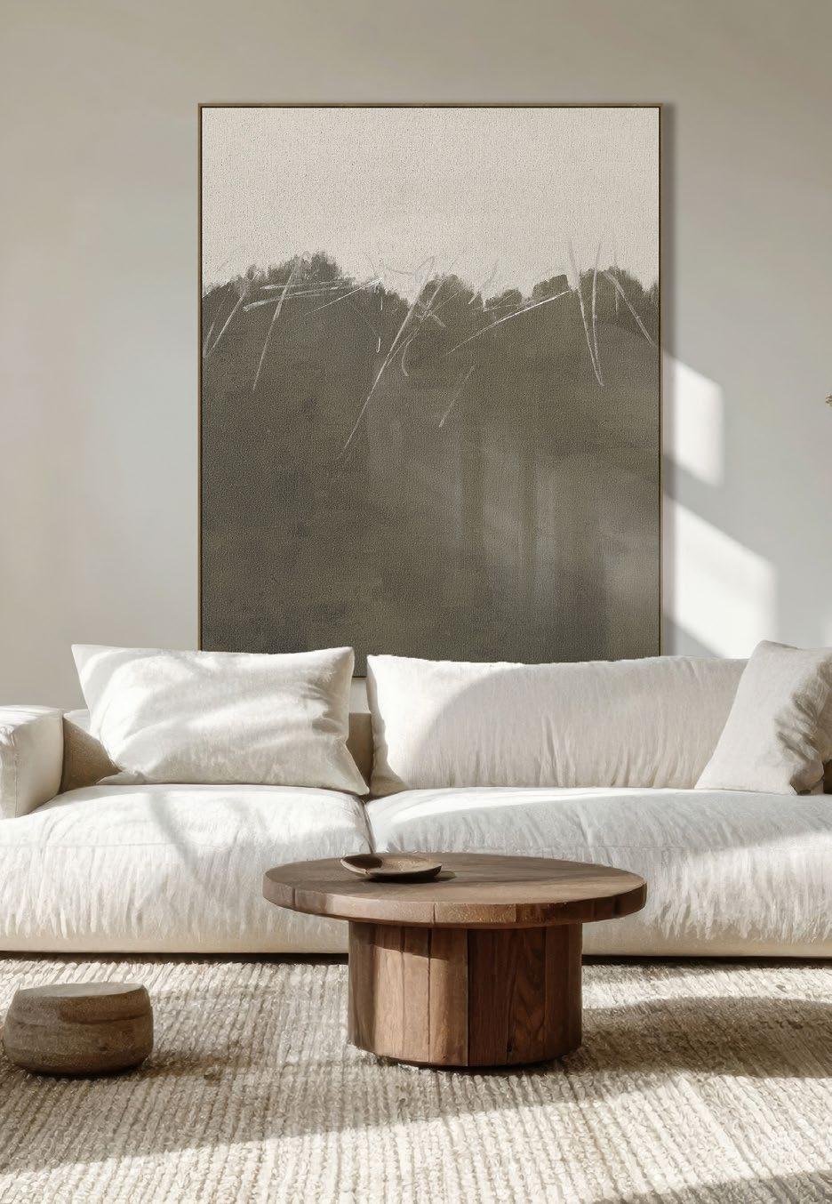 The HAUS wall art collection comprises variously sized artworks and is characterised by several generously proportioned pieces. Most prints measure 100cm W x 140cm L, but the range also includes smaller-sized prints (60cm W x 80cm L and 50cm W x 70cm L) as well as extra-large statement pieces (180cm W x 145cm L and 145cm W x 145cm L). The styled images in this publication can be used as a reference for proportion.