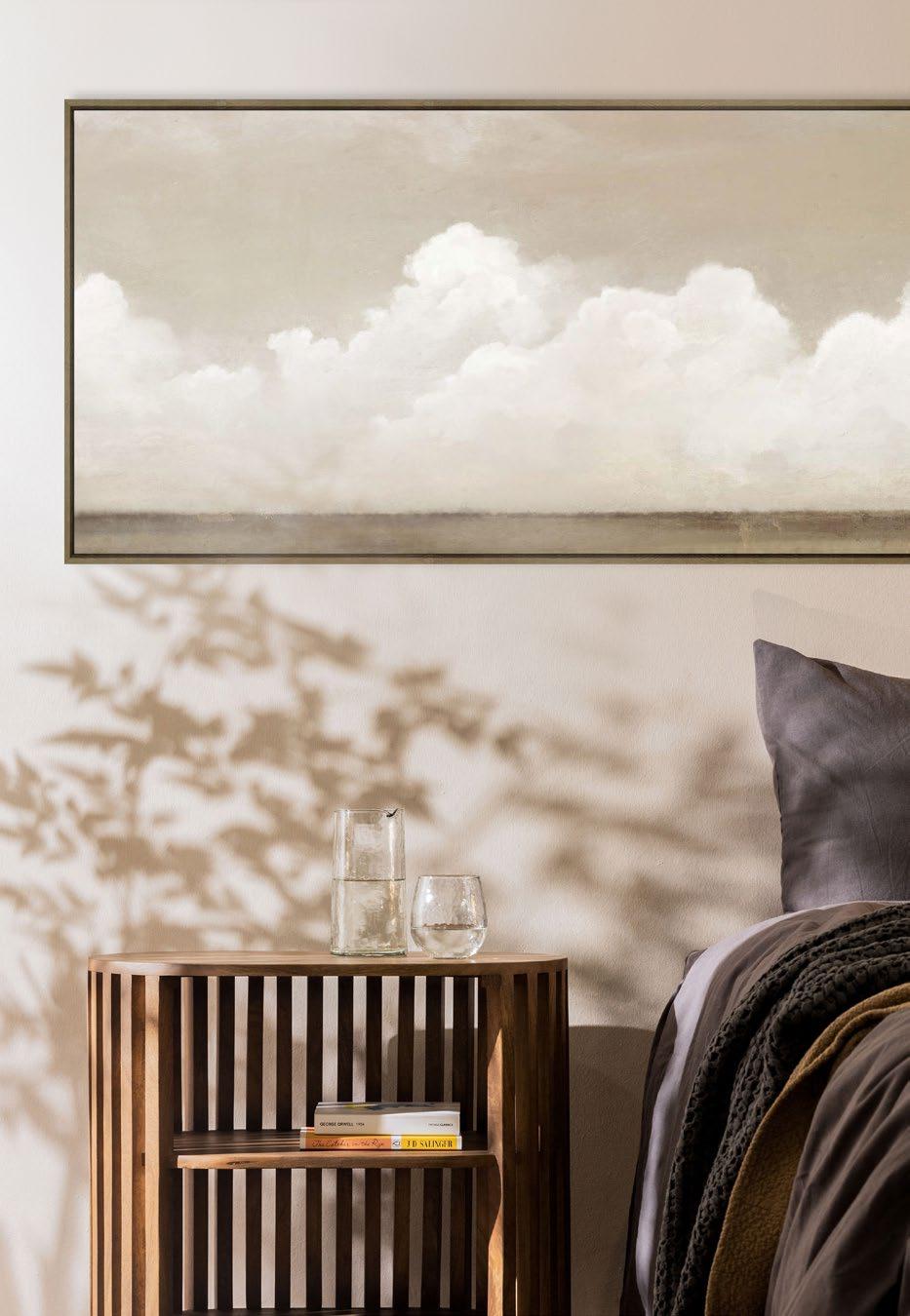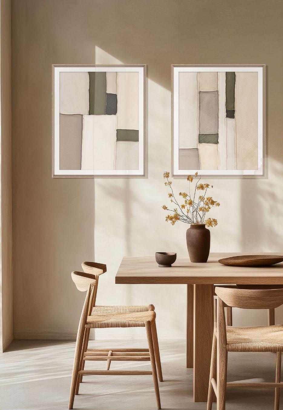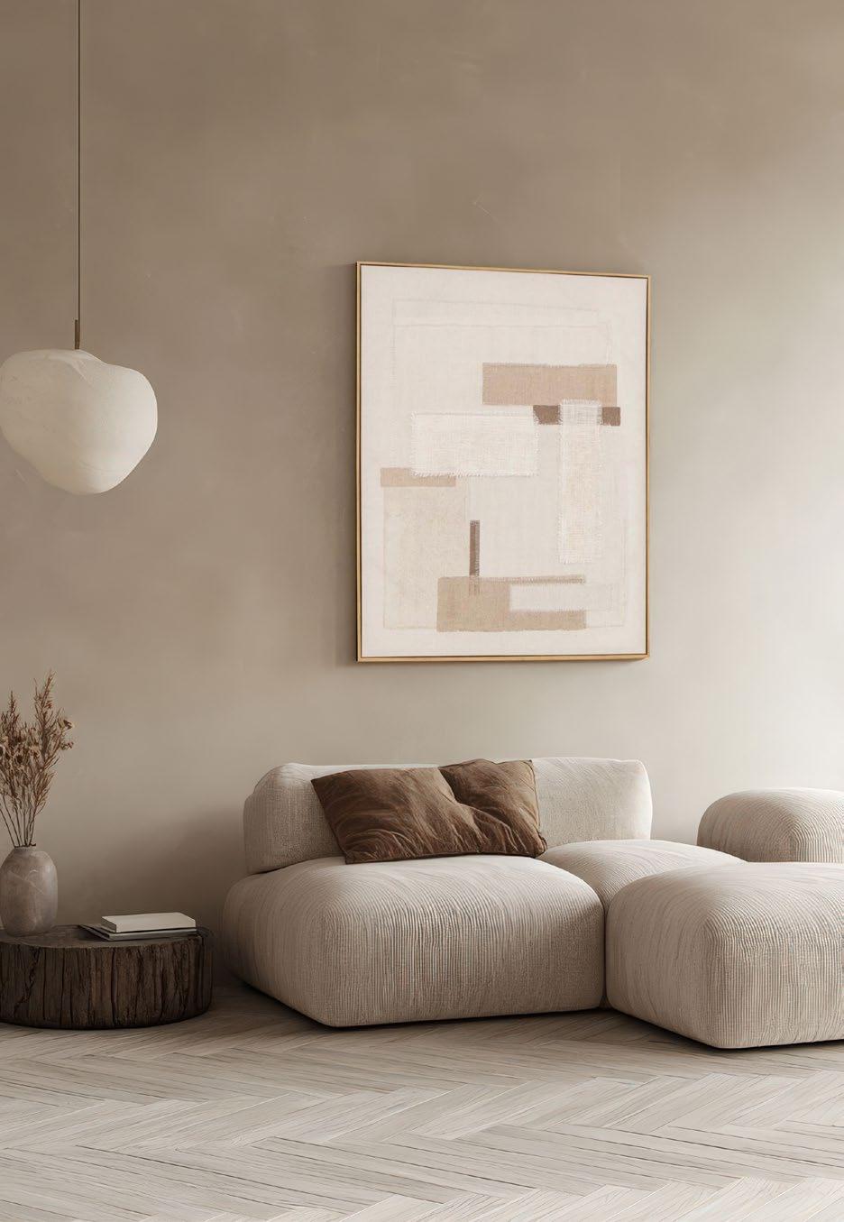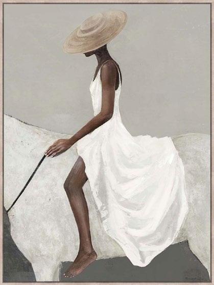 The HAUS wall art collection comprises variously sized artworks and is characterised by several generously proportioned pieces. Most prints measure 100cm W x 140cm L, but the range also includes smaller-sized prints (60cm W x 80cm L and 50cm W x 70cm L) as well as extra-large statement pieces (180cm W x 145cm L and 145cm W x 145cm L). The styled images in this publication can be used as a reference for proportion.