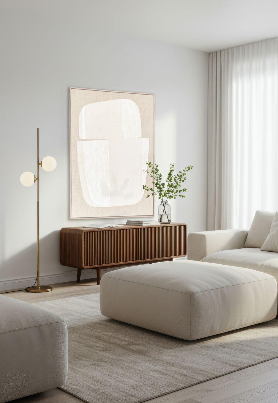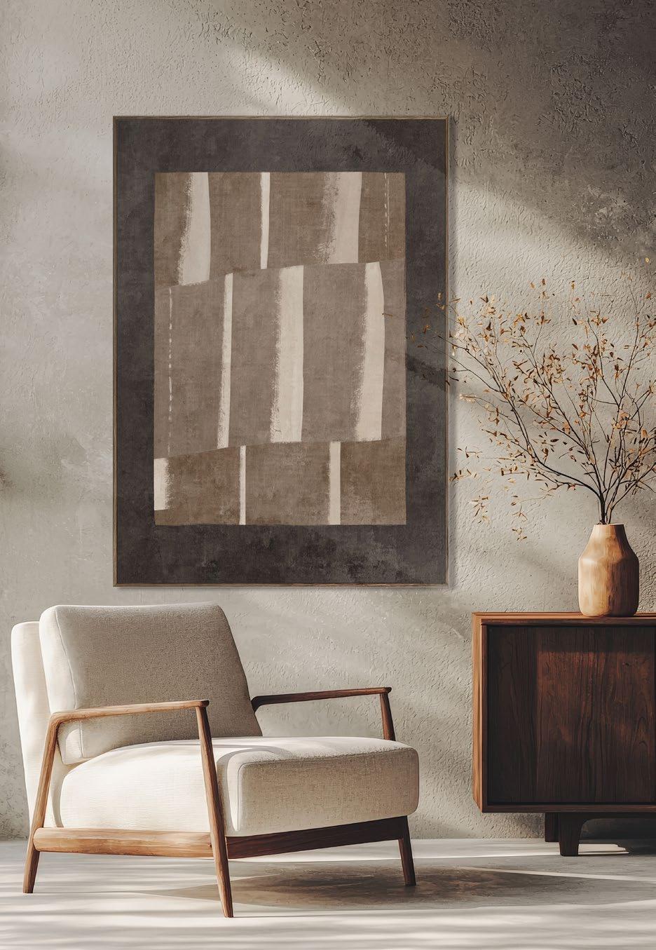 LINEAR CURVES ART (Hazel Cream) 100cm W x 140cm L x 4cm D