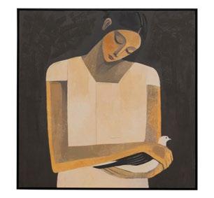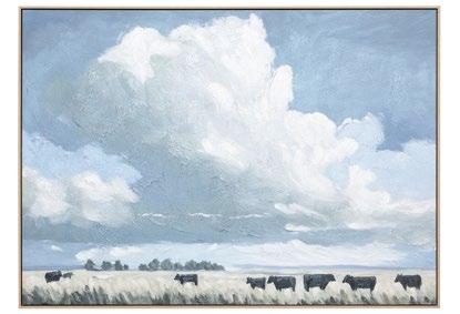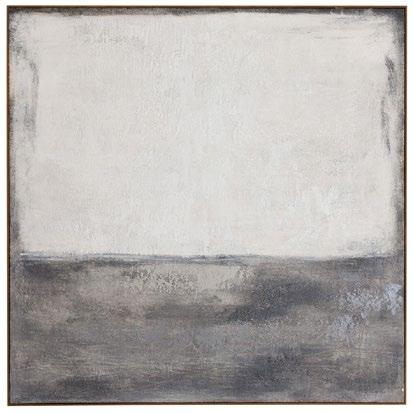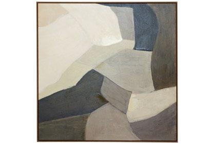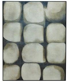 Most of the pieces in this collection feature a printed canvas with hand-painted finishes. The collections also include artworks that showcase a textured surface, embroidered detail or a 3D effect; as well as pieces that have been created on an exposed linen base cloth or hessian canvases with impasto-style brushstrokes, giving them extra depth and texture.