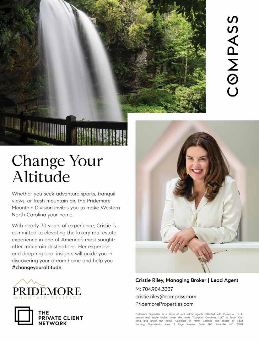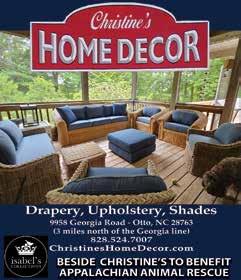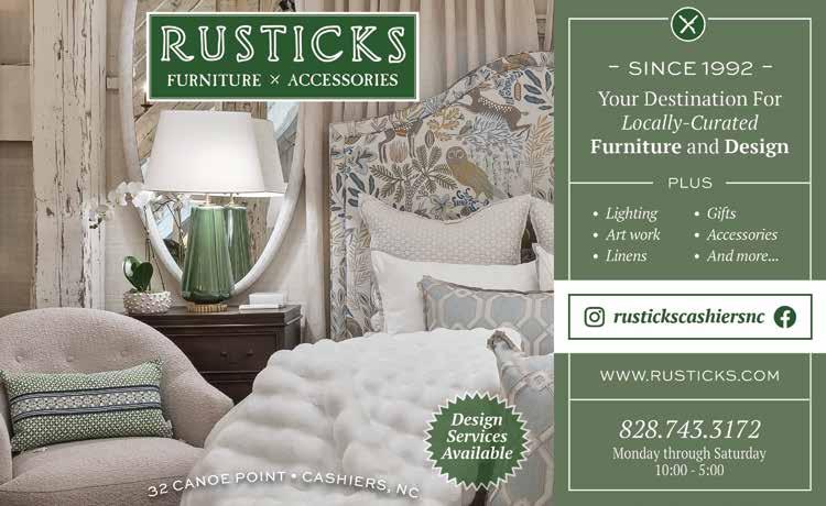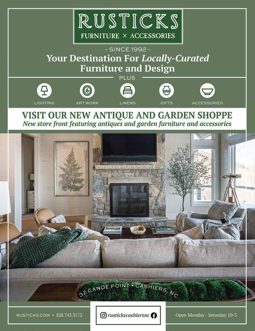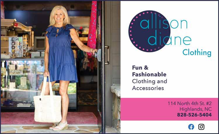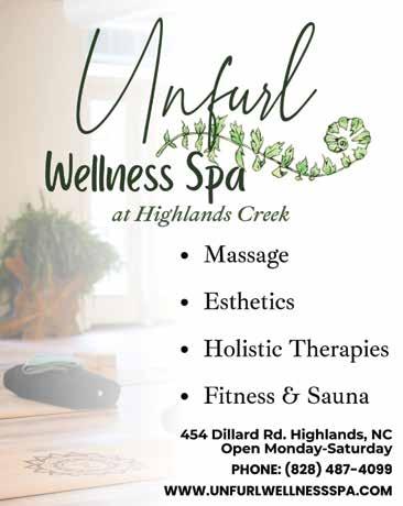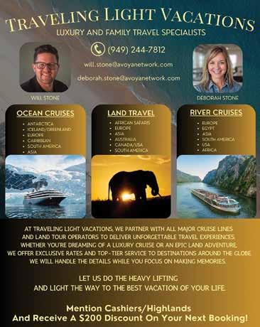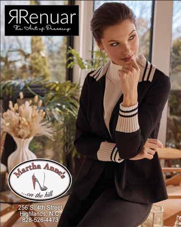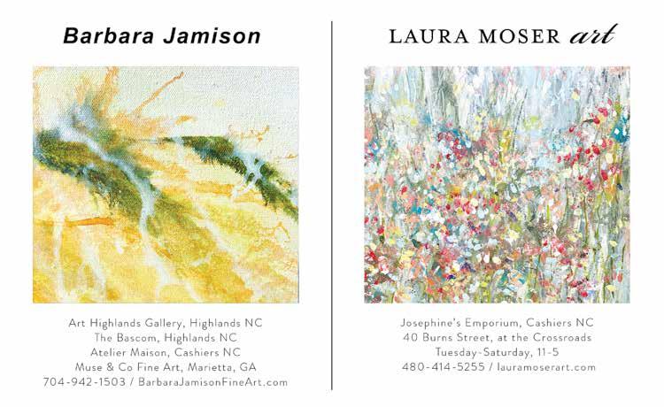 and neither Laurel Magazine nor any of its staff is responsible for advertising errors, omissions, or information that has been misrepresented in or to the magazine. Any substantial errors that are the fault of the magazine will be subject to a reduction or reimbursement of the amounts paid by the advertiser, but in no case will any claim arising from such error exceed the amount paid for the advertisement by the advertiser. Visit us online thelaurelmagazine.com phone 828.526.0173 email info@thelaurelmagazine.com mail Post Office Box 565 Highlands, North Carolina 28741