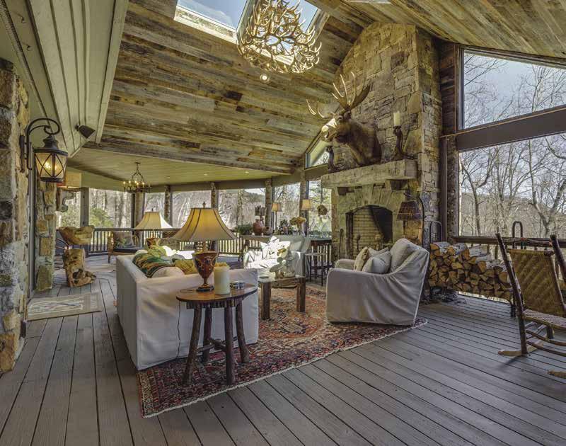 5 BR / 5 BA / 1 HBA This sophisticated newer home is perched on a generous sized lot overlooking the Cherokee Campground park, and has a Chimneytop Mountain view. The location is ideal—in the heart of High Hampton and on the “original” side of the neighborhood, it is within easy walking distance to the club and Inn. Approaching the home from the paved circular driveway and slate covered patio, one LOCATED IN THE HISTORIC MINNIE COLE HOUSE 619 HWY 107 S MCKEEPROPERTIES.COM 828.743.3411
