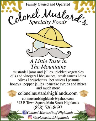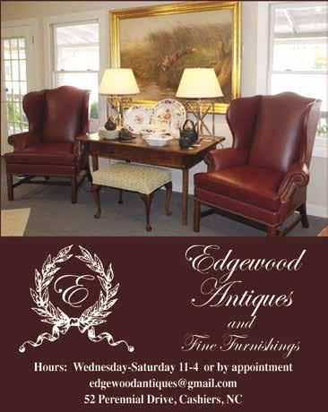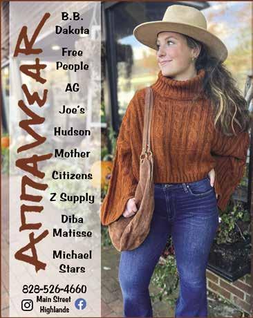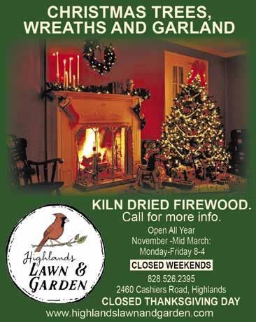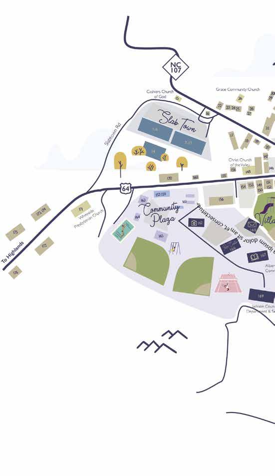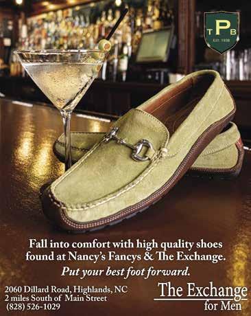 The Christmas Tree P 75 Classic Lighting & Design, Inc. classiclightinganddesign.com P 167 Colonel Mustard’s Specialty Foods colonelmustardshighlands.com P 60 Country Club Properties ccphighlandsnc.com P 2 Creative Concepts P 160 The Dancing Bear at the High Dive P 100 Dauntless Printing dauntlessprinting.com P 161, 176 The Designer’s Market thedesignersmarket-nc.com P 55 Diane McPhail, Artist P 88 The Dry Sink thedrysink.com P 41 Dutchmans dutchmansdesigns.com P 173 Edgewood Antiques & Fine Furnishings P 61 Edward Jones Investments edwardjones.com P 153 Elena’s Women’s Golf and Activewear elenagolf.com P 151 The Exchange P 59, 140 Fire + Water firemt.com P 15 Fire Mountain Inn & Cabins firemt.com P 15 Four Seasons Landscape fsl-wnc.com P 24 Four65 Woodfire Bistro + Bar four65.com P 104 Dr. Edward D. Frederickson MD FACP P 149 Fressers Courtyard Cafe wecaterhighlands.com P 99 Fusion Yoga & Wellness fusionyogaandwellness.com P 149 Gracewear Boutique gracewearcollection.com P 36 Grand Olde Station grandoldestation.com P 111 The Greystone Inn thegreystoneinn.com P 4 Green Mountain Builders greenmountainbuilders.com P 141 Head Innovations P 160 High Camp HighCampNC.com P 4 The High Dive P 100 Highland Hiker highlandhiker.com P 157 Highlands Aerial Park highlandsaerialpark.com P 50 Highlands Cashiers Health Foundation hchealthfnd.org P 155 Highlands Chamber of Commerce highlandschamber.org P 81 Highlands Dermatology highlandsdermatology.com P 149 Highlands Fine Art & Estate Jewelry Wine Shop highlandsfineart.com P 22, 23