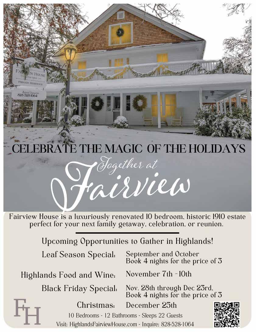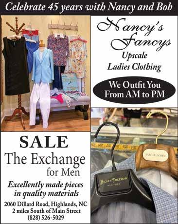 Copyright © 2024 by The Mountain Laurel, LLC. All rights reserved. Laurel Magazine is published eleven times per year. Reproduction without the permission of the publisher is prohibited. The publishers and editors are not responsible for unsolicited material and it will be treated as unconditionally assigned for publication subject to Laurel Magazine’s right to edit. Return postage must accompany all manuscripts, photographs and drawings. Every effort has been made to assure that all information presented in this issue is accurate, and neither Laurel Magazine nor any of its staff is responsible for advertising errors, omissions, or information that has been misrepresented in or to the magazine. Any substantial errors that are the fault of the magazine will be subject to a reduction or reimbursement of the amounts paid by the advertiser, but in no case will any claim arising from such error exceed the amount paid for the advertisement by the advertiser. Visit us online thelaurelmagazine.com phone 828.526.0173 email info@thelaurelmagazine.com mail Post Office Box 565 Highlands, North Carolina 28741