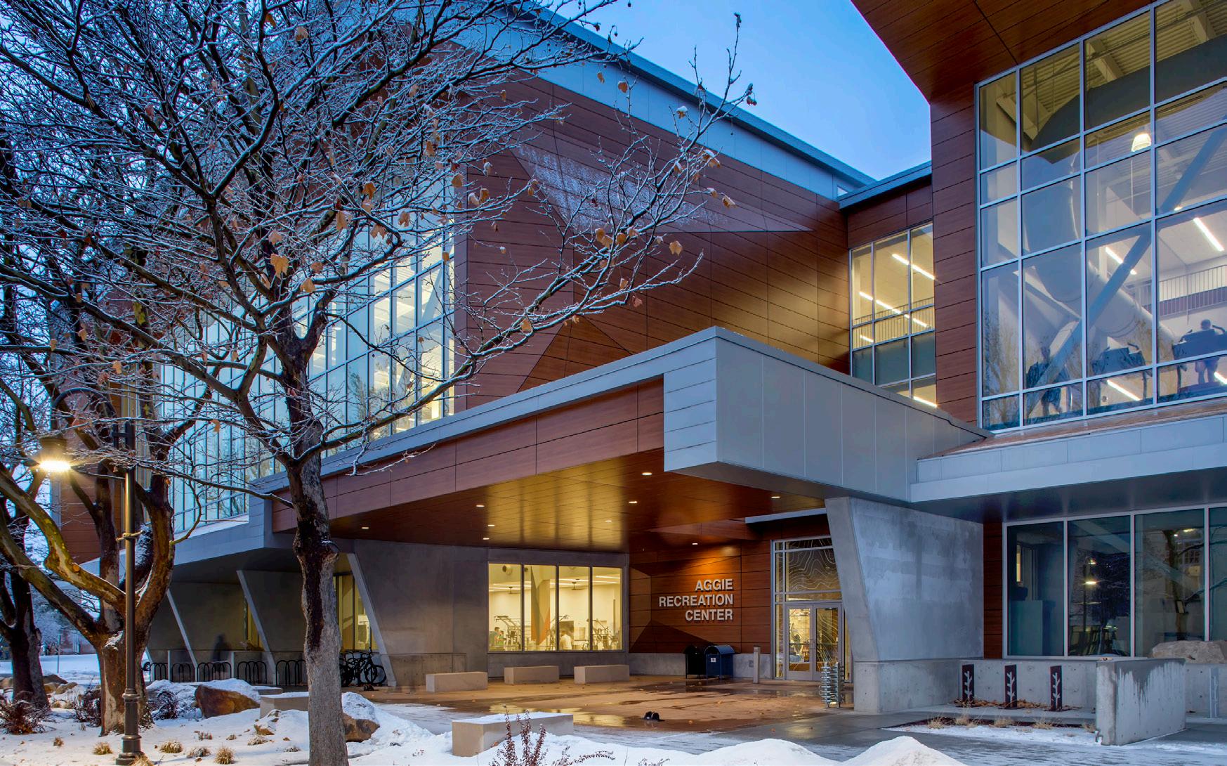 Graphics at Aggie Rec Center are inspired by the geography of the Utah landscape. Openings and architectural forms are married with stylized landscapes, topographic patterns and dimensional elements to reinforce an experience of place. The facility now serves over 17,000 students and has become a visual gateway for the campus.