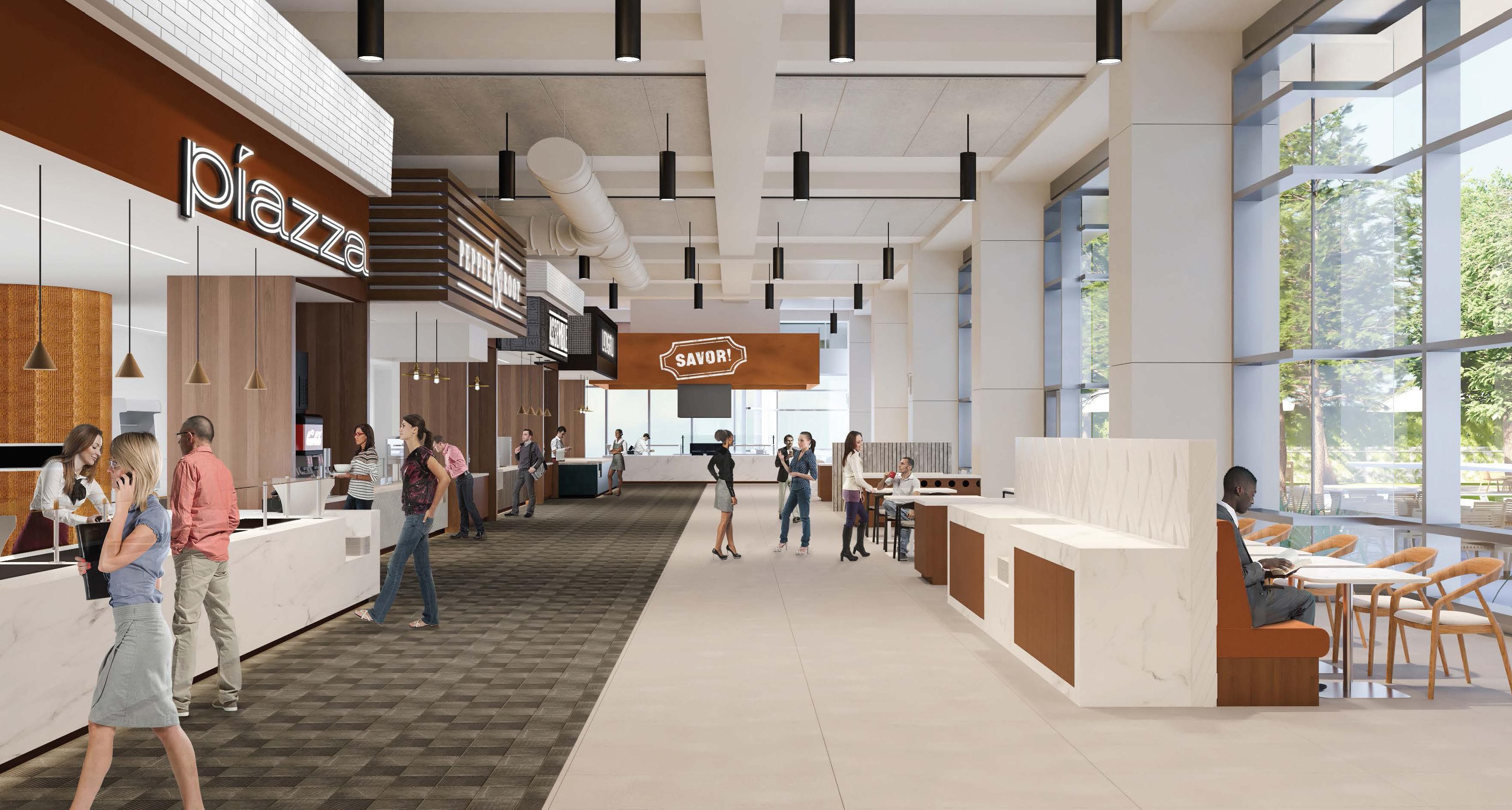 A public dining area for this confidential corporate client features 6 serveries over an entire floor. EXD provided custom naming and logomarks for each station. The design team organized naming options into 3 buckets related to the client’s brand and created naming briefs to keep the vision aligned through the logo development.