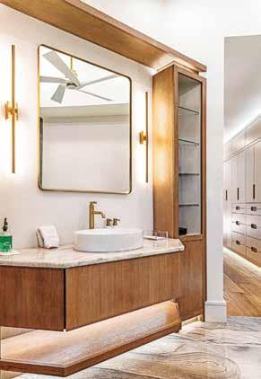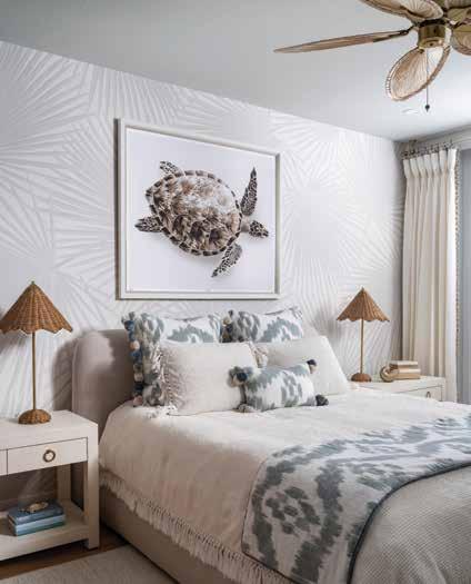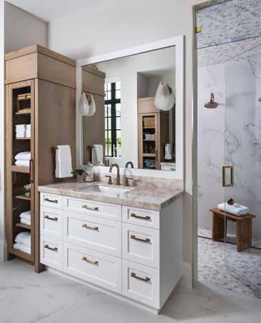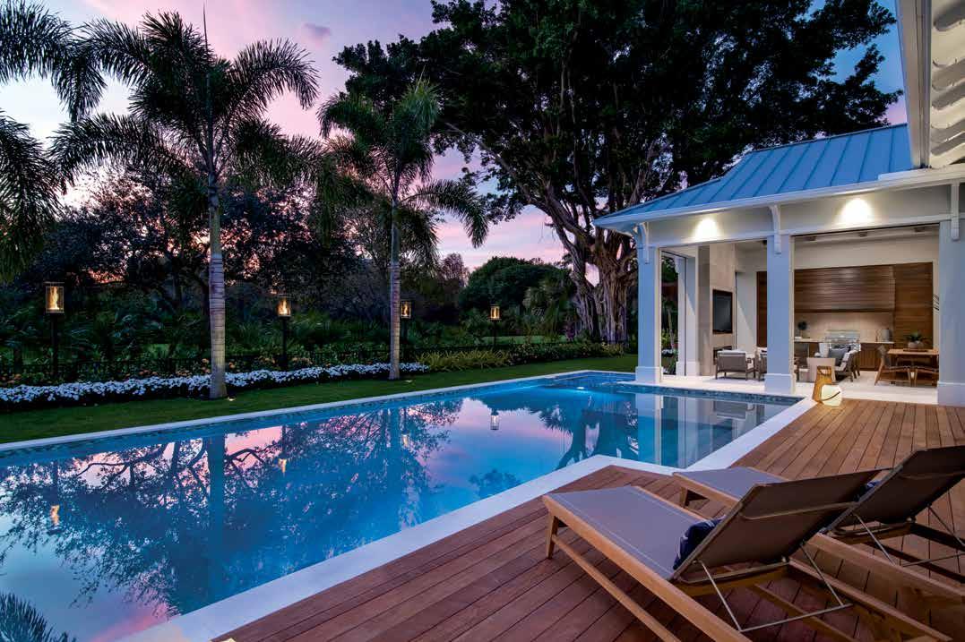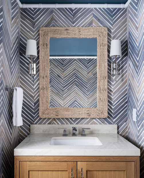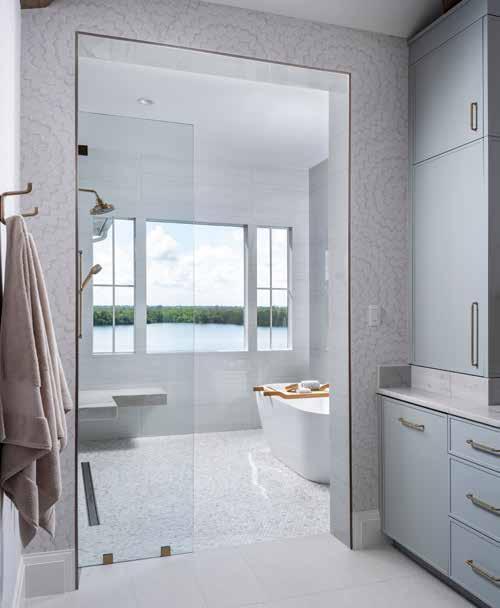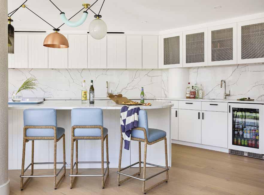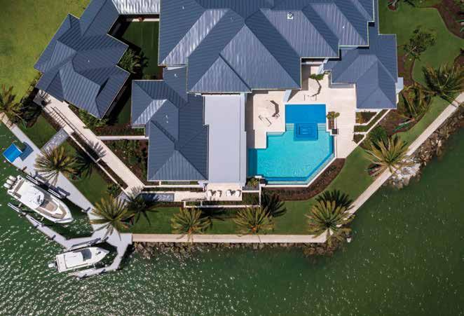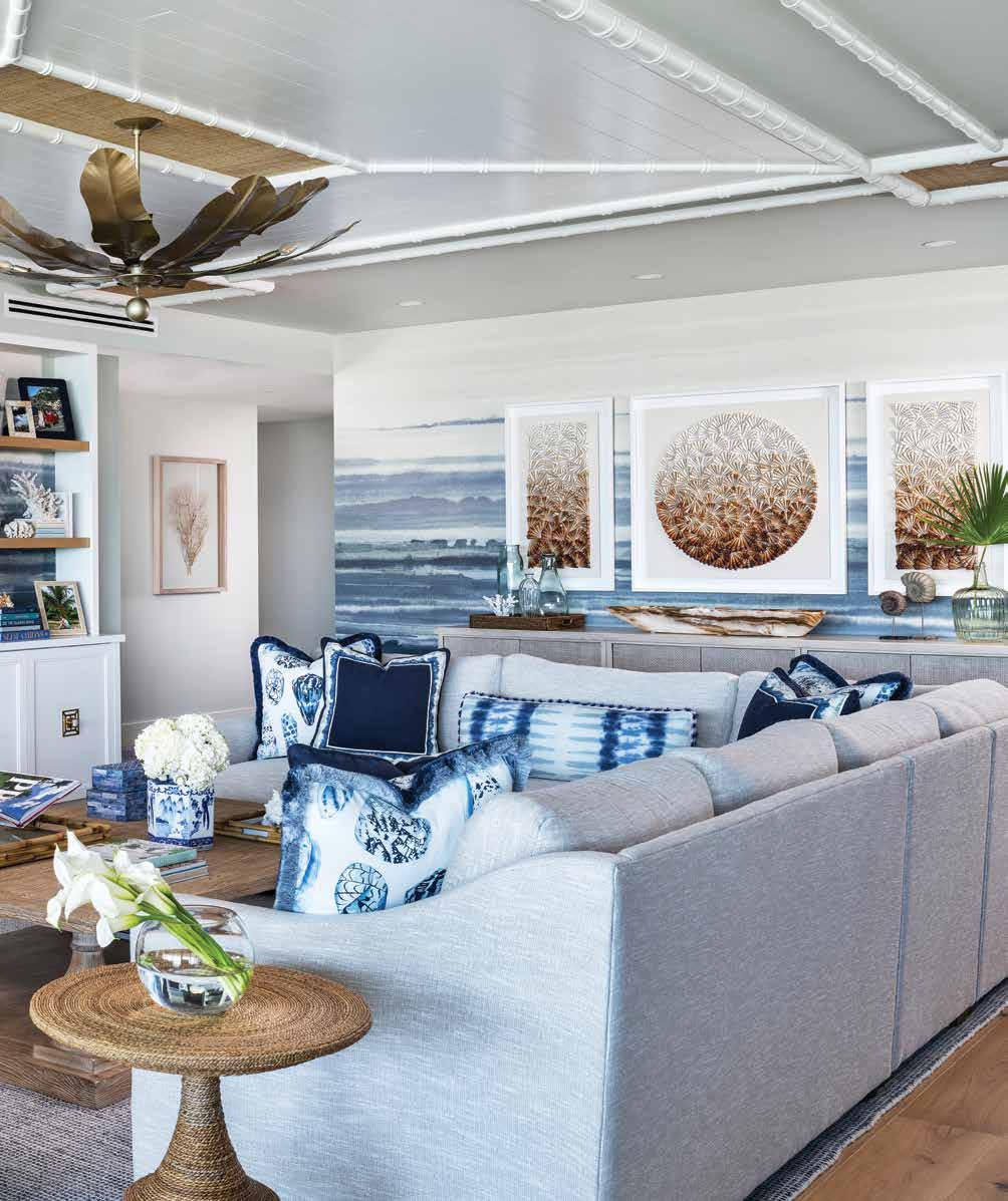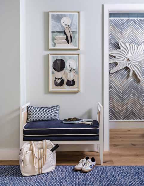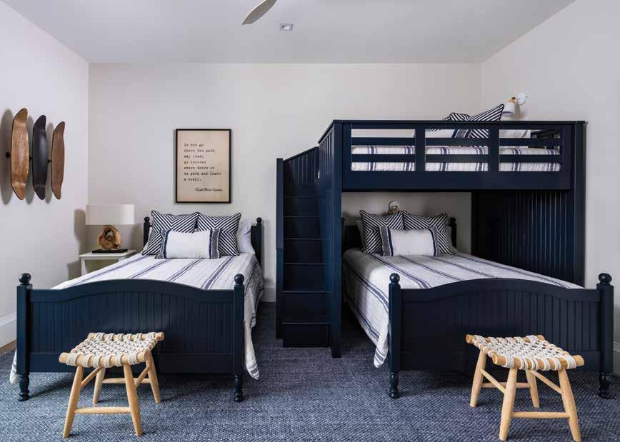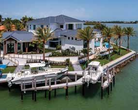 This property has exceptional water access and views, so the outdoor elements are equally important. McHenry curates destinations — from turf areas for play to tranquil fire bowls around the vanishing edge pool for ambiance into the evening. For the avid fisherman, Abad hooks every need on the first pass to design a fishing pavilion with ample storage, an ice maker, and a private bath — all linked to the dock by a gently sloped ramp that underscores the home’s practical luxury. With every challenge met, the house is both a fisherman’s dream and a family’s coastal paradise. n