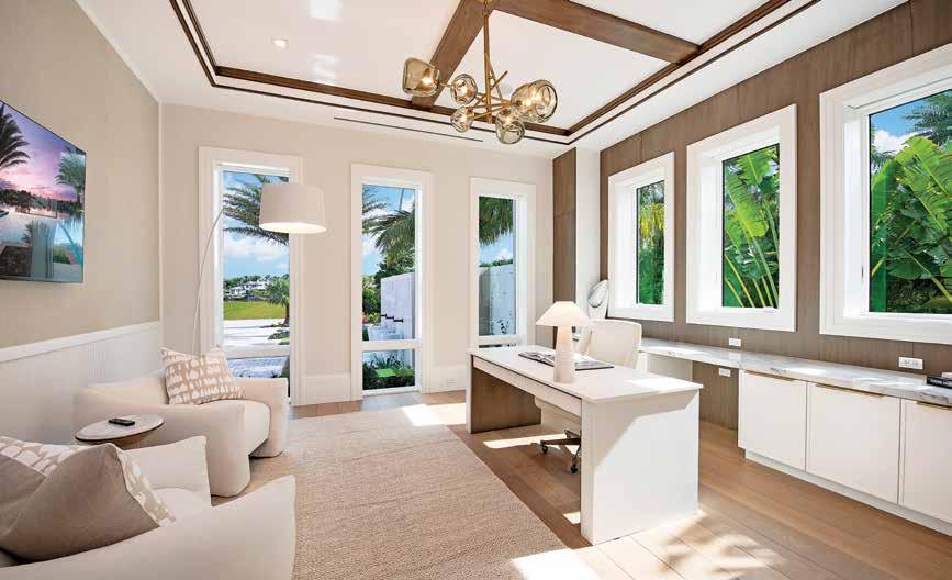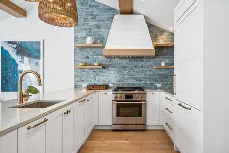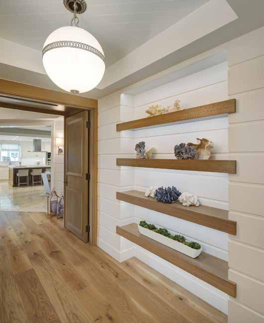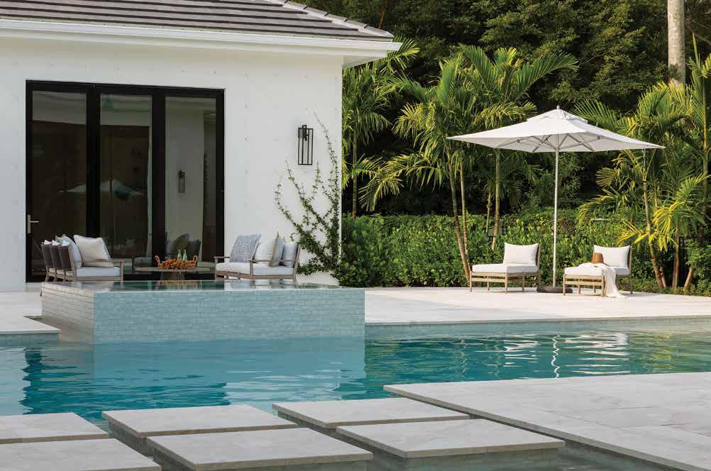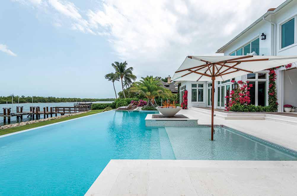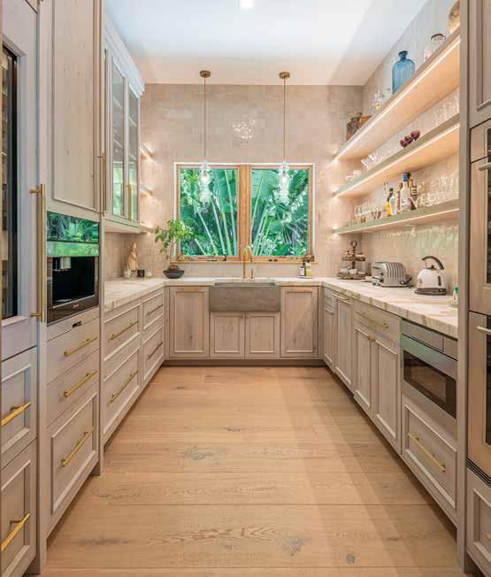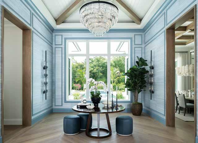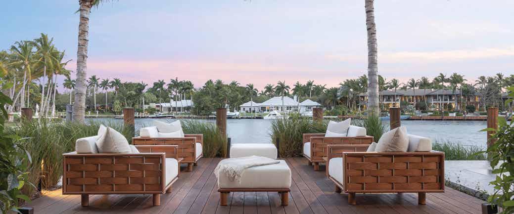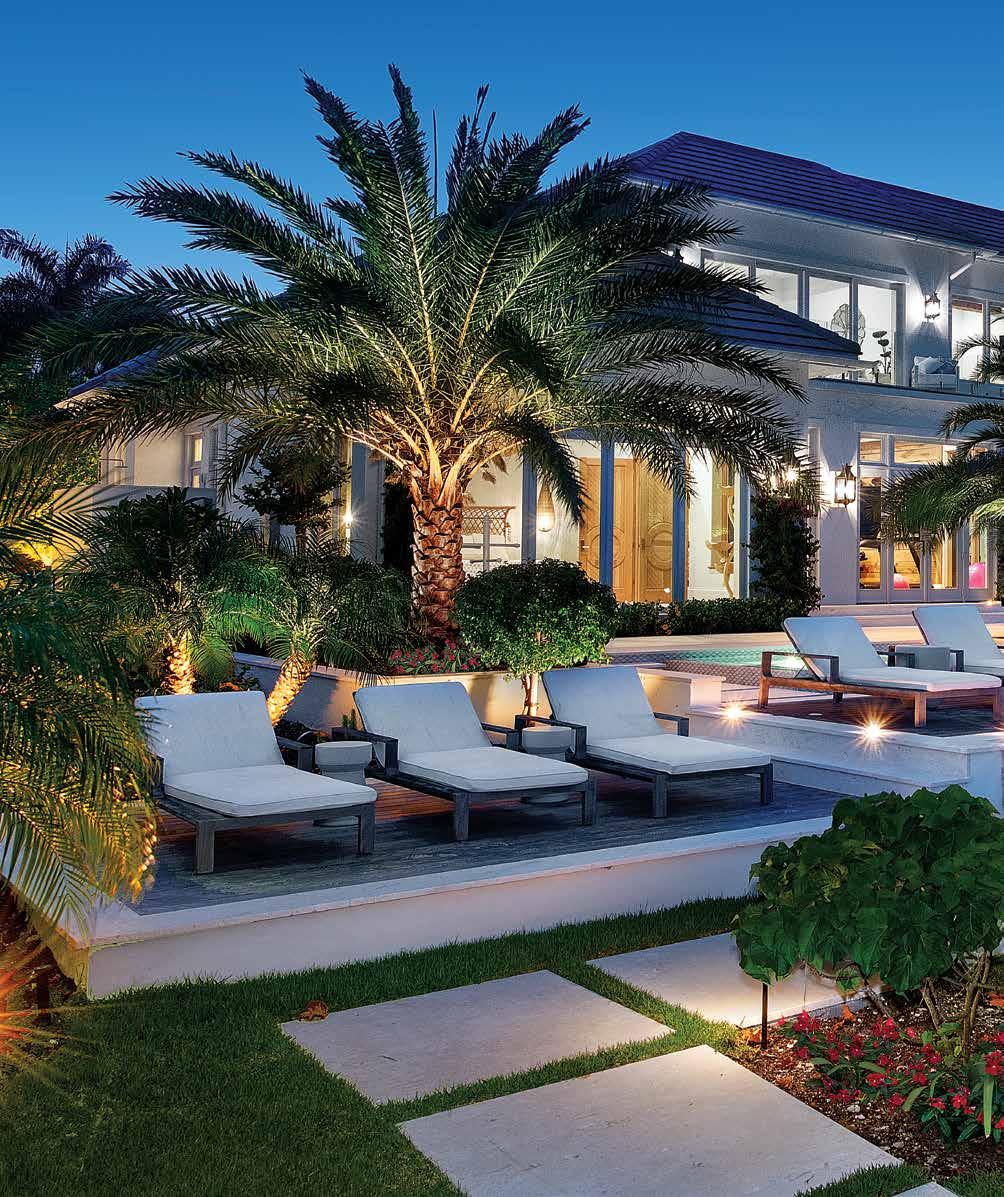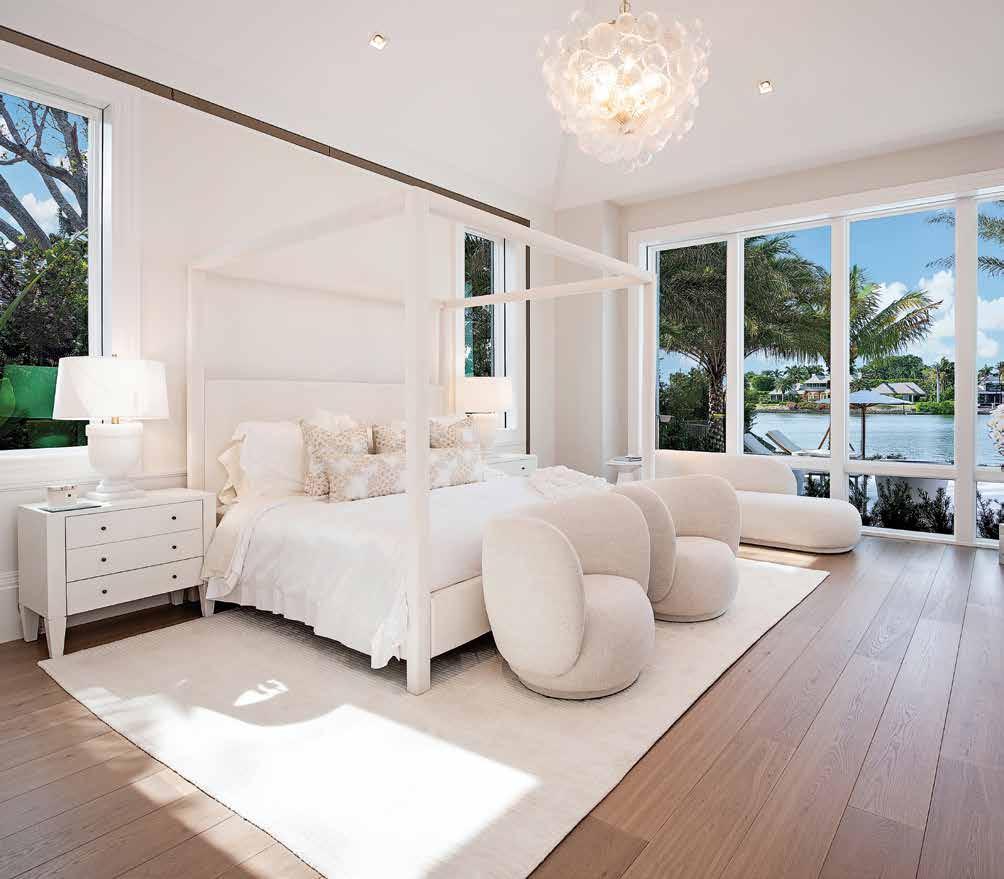 This property has exceptional water access and views, so the outdoor elements are equally important. McHenry curates destinations — from turf areas for play to tranquil fire bowls around the vanishing edge pool for ambiance into the evening. For the avid fisherman, Abad hooks every need on the first pass to design a fishing pavilion with ample storage, an ice maker, and a private bath — all linked to the dock by a gently sloped ramp that underscores the home’s practical luxury. With every challenge met, the house is both a fisherman’s dream and a family’s coastal paradise. n