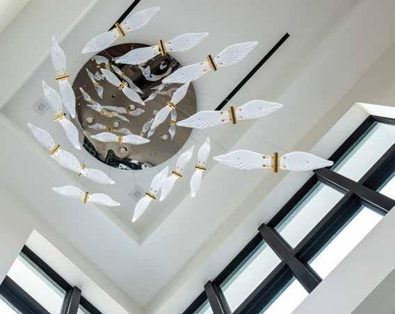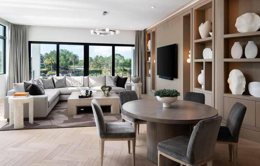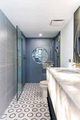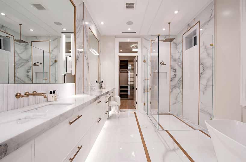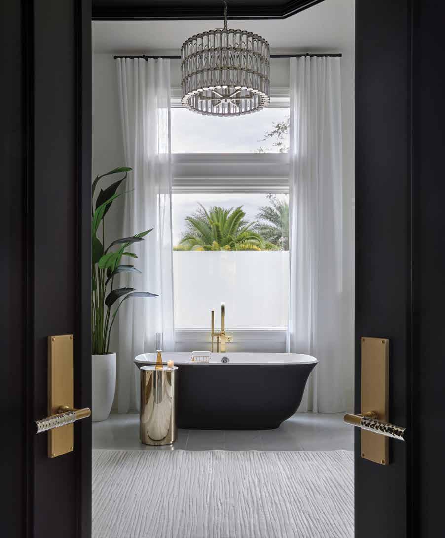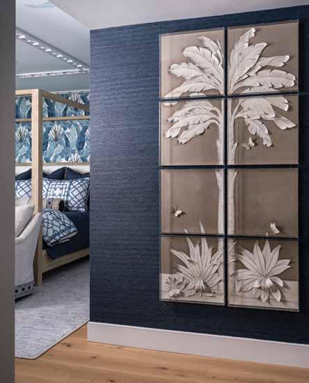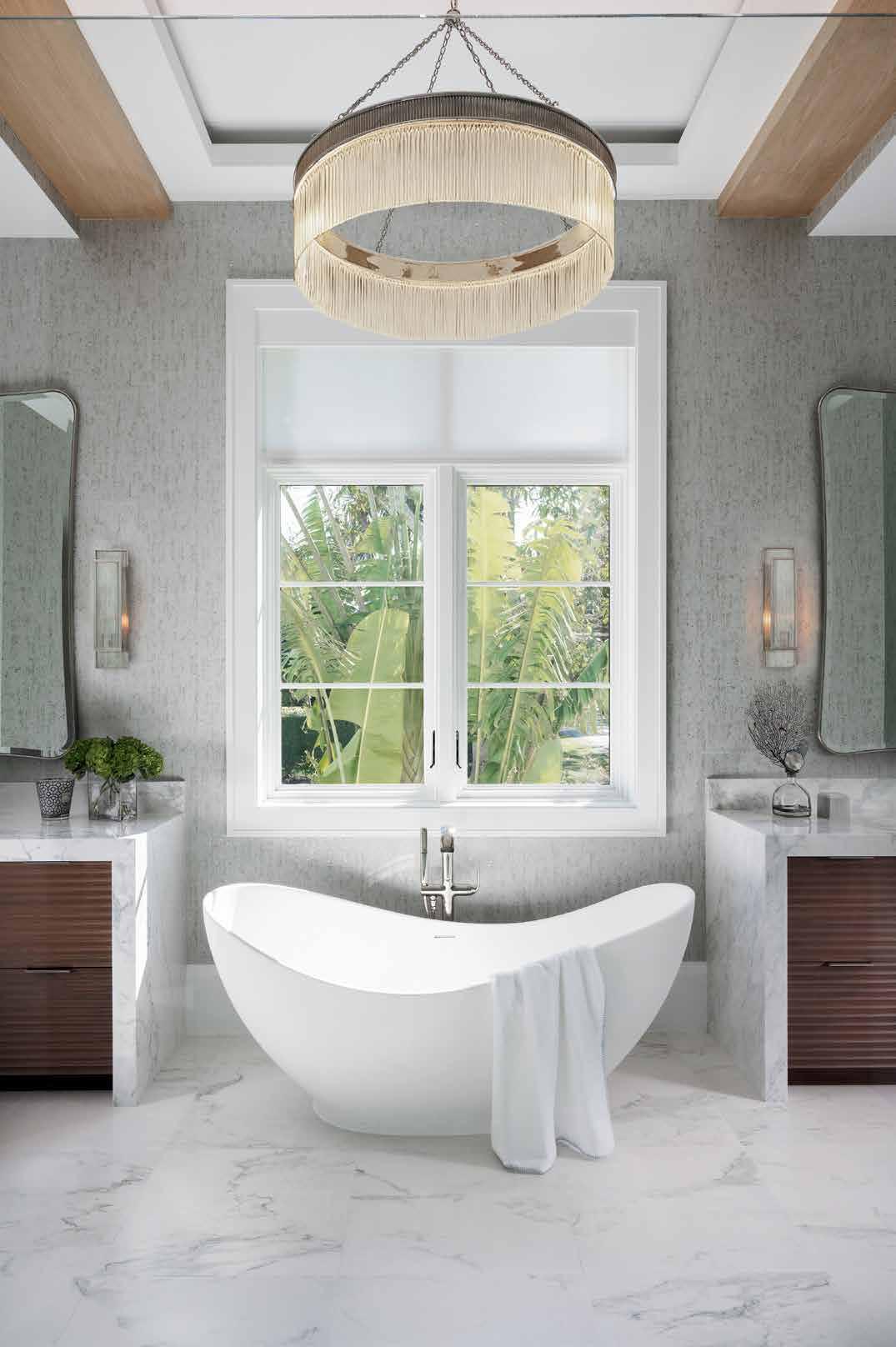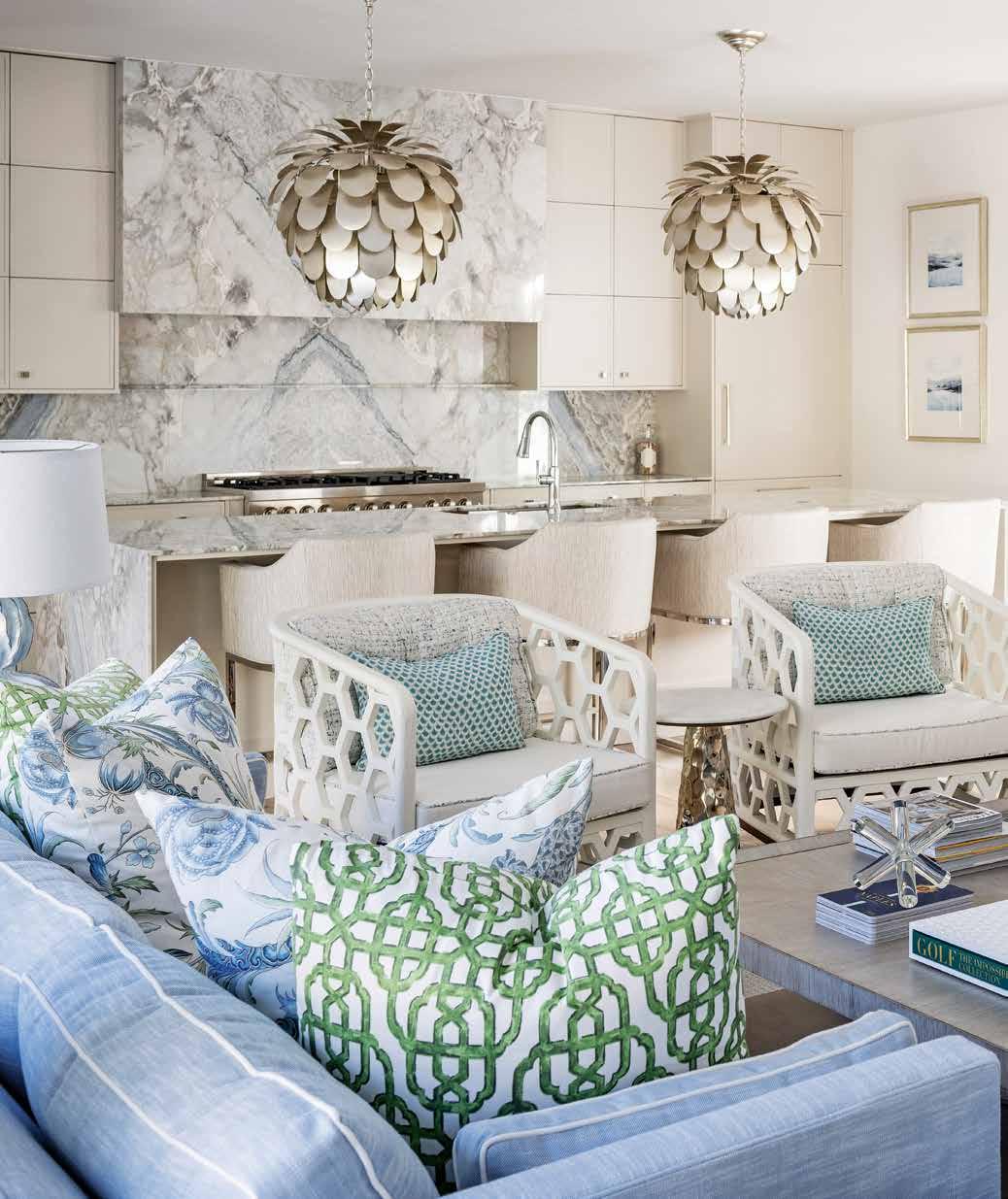 This property has exceptional water access and views, so the outdoor elements are equally important. McHenry curates destinations — from turf areas for play to tranquil fire bowls around the vanishing edge pool for ambiance into the evening. For the avid fisherman, Abad hooks every need on the first pass to design a fishing pavilion with ample storage, an ice maker, and a private bath — all linked to the dock by a gently sloped ramp that underscores the home’s practical luxury. With every challenge met, the house is both a fisherman’s dream and a family’s coastal paradise. n