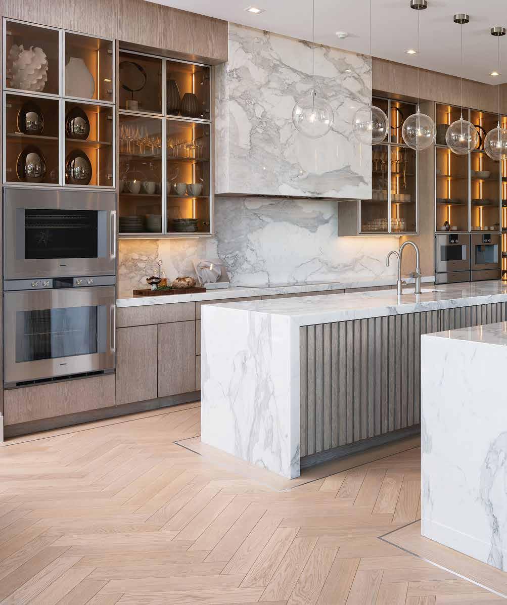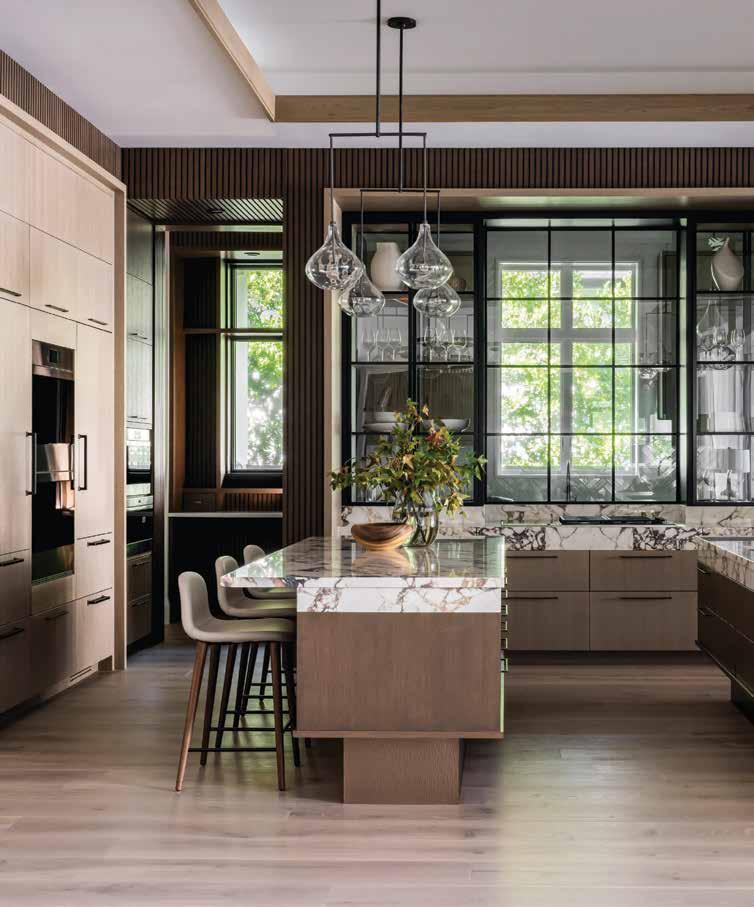 Kitchen: “I took the cabinetry all the way up to the ceiling,” states McDonald. “It is impressive and extravagant, but feels casual — a great juxtaposition.”