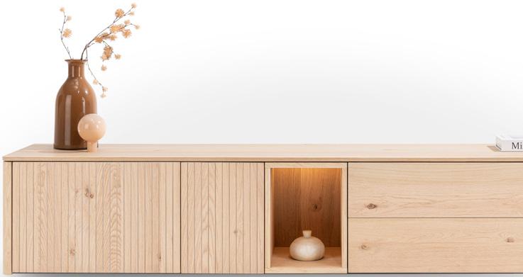 Design uit het verleden is een belangrijke inspiratiebron voor de trends van vandaag. En dat zie je terug in de collectie TRENTON. Onze designers combineerden stijlelementen uit de jaren ‘60 en ‘70 met eigentijdse vormgeving en moderne materialen. Het eindresultaat: kastmeubelen van eikenhout met afgeronde vormen en een retro latjesmotief. En jij bepaalt zelf je look! Kies je voor natural of clay? ”