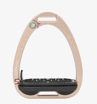 The ergonomic footplate of the Balance Stirrup is set at 5° with a cross-track grip surface and mounted on an impact absorbing cushion layer of dynamic polymer with a 70% compression rating.