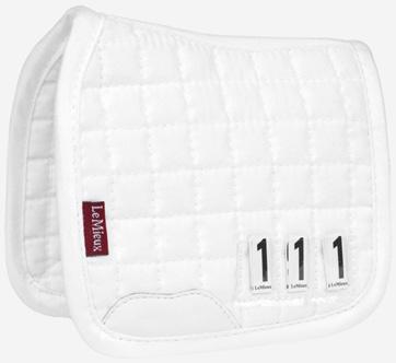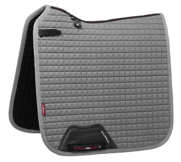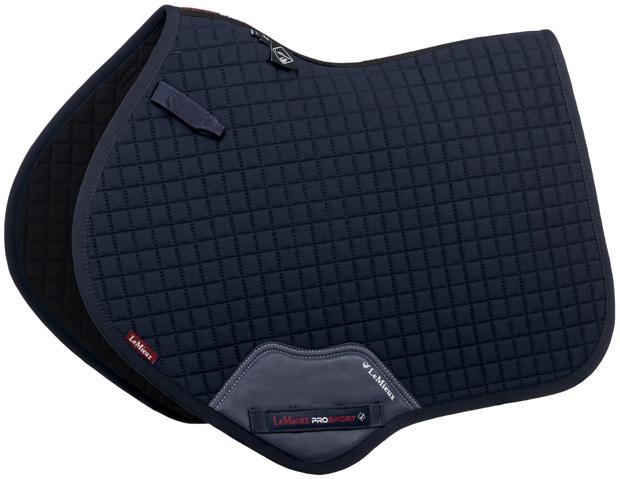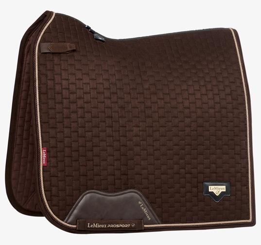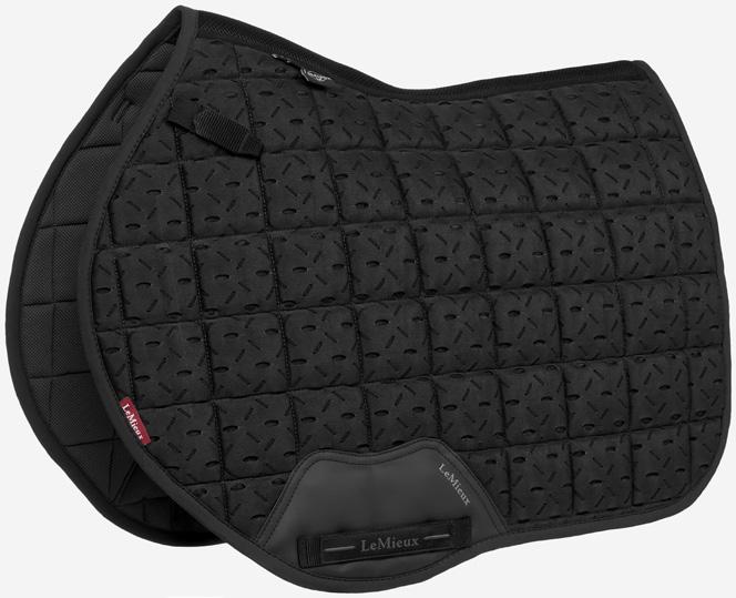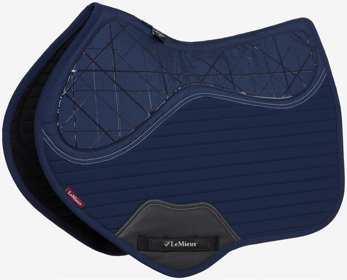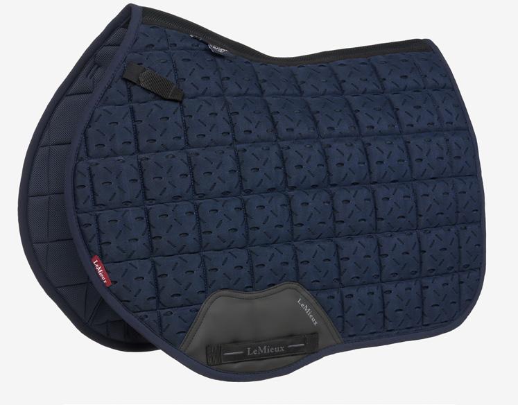 Quilted suede-effect pad with cord edging Bamboo blend lining is naturally sweat-wicking, breathable, antimicrobial and anti-static LeMieux branded metallic badge