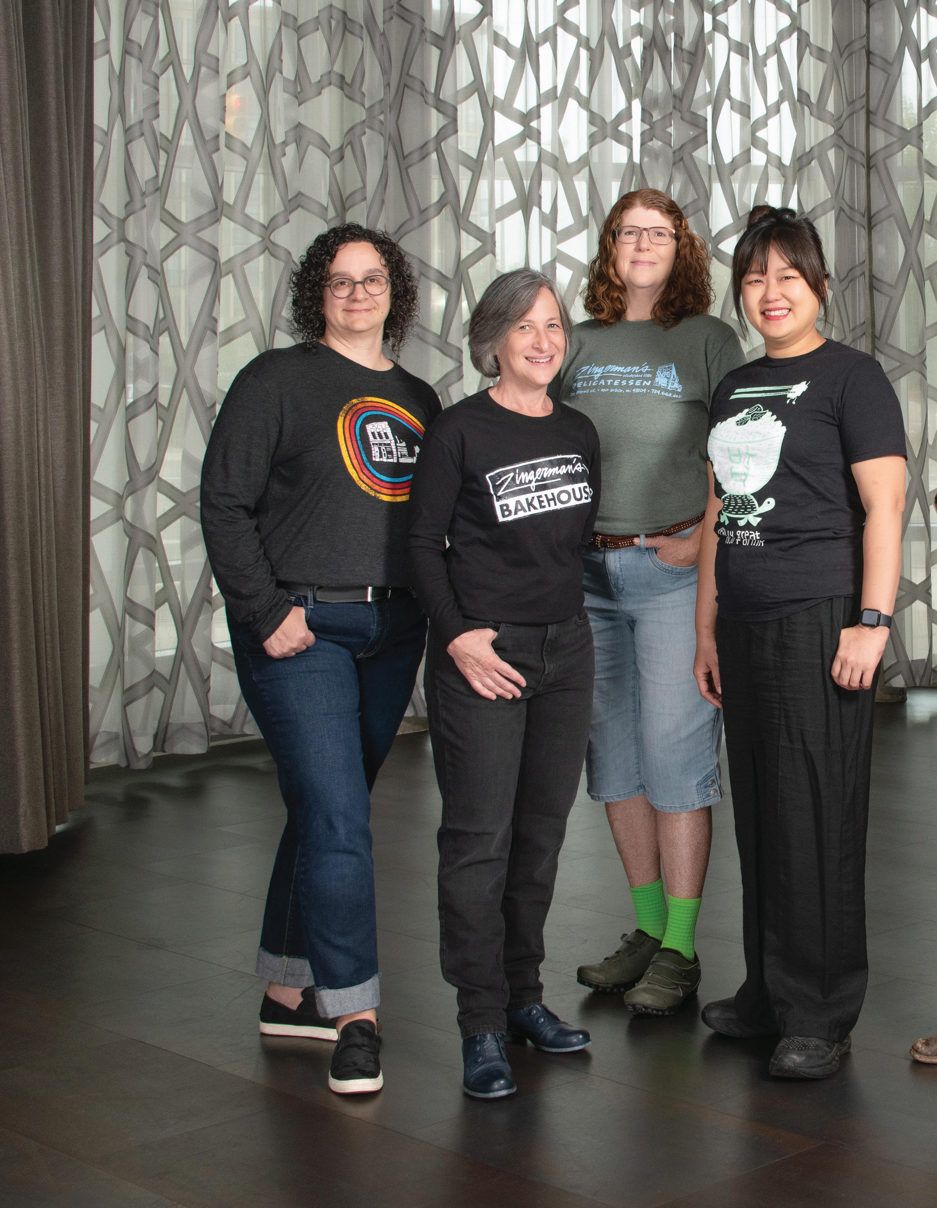 majority of ZCoB managers are women, too!), eight of which are represented here by their female owners/co-owners (from left): Toni Morell, Amy Emberling, Grace Singleton, Ji Hye Kim, Kristie Brablec, Katie Frank, Lisa Schultz, and Tabitha Mason. Zingerman’s fosters growth opportunities (many of the leaders across the ZCoB started their careers in the organization as bakers, servers, cooks, and more) and is focused on building long-lasting relationships with the community (including striving to give back 10% of profits in Washtenaw County annually).