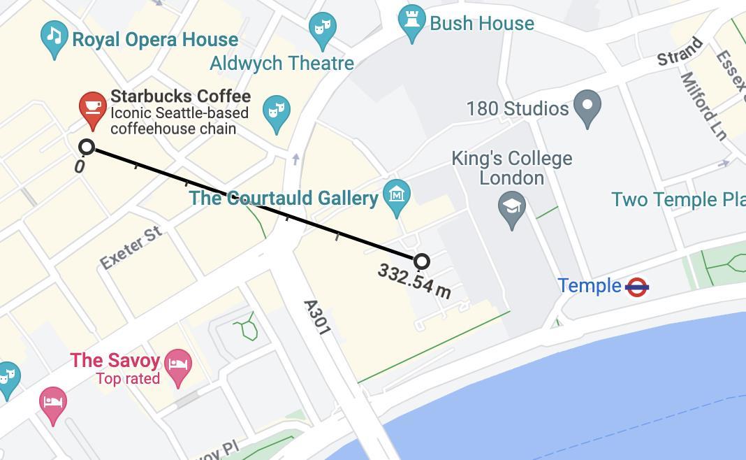 Right click on the location of your nearest Starbucks and click 'measure distance’. NB: you can find a map of all Starbucks stores here.