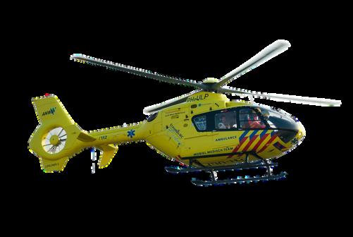 Gelukkig is de motorcrosser in veilige handen en wordt hij op een brancard de ambulance in geholpen.