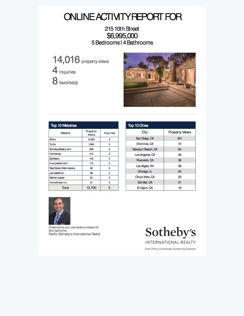 MODERN LUXURY MEETS BALI CASUAL | $7,800,000 PRIVATE GETAWAY WITH OCEAN VIEWS | $7,950,000-$8,450,000 117 ACRE, 3 PARCEL AVOCADO FARM $6,495,000 MODERN HILLSIDE ESTATE WITH OCEAN VIEWS $6,500,000 VALLEY CENTER LA JOLLA DEL MAR ENCINITAS ENCINITAS ENCINITAS FULLY RENOVATED BEACH HOME | $50,000/MONTH DEL MAR BEACH CUSTOM-BUILT OCEANFRONT MASTERPIECE $6,850,000 NEW CONSTRUCTION, SINGLE-LEVEL ESTATE $6,800,000 Sotheby’s International Realty® is a registered trademark licensed to Sotheby’s International Realty Affliates LLC. Each Offce Is Independently Owned and Operated. DRE#01767484. *Seller will entertain offers within the listed price range. MASTERFULLY RESTORED MILLS ACT OPPORTUNITY $4,000,000 THE BEST OF INDOOR/OUTDOOR LIVING $8,750,000 BANKERS HILL RANCHO PACIFICA IMMACULATE WATERFRONT RETREAT | $8,000,000 ENCINITAS GRANDEUR, TIMELESSNESS & STYLE $6,200,000 RANCHO SANTA FE ERIC'S RECENT TRANSACTIONS ERIC IANTORNO DELIVERS RESULTS. GET YOUR HOME SOLD TODAY! POINT LOMA $13,250,000 REPRESENTED SELLER SOLANA BEACH $11,000,000 REPRESENTED BUYER POINT LOMA $10,500,000 REPRESENTED BUYER & SELLER ENCINITAS $8,000,000 REPRESENTED BUYERS RANCHO PACIFICA $7,750,000 REPRESENTED SELLERS RANCHO SANTA FE* $7,200,000 REPRESENTING BUYERS RANCHO SANTA FE $6,200,000 REPRESENTED SELLERS ENCINITAS $6,000,000 REPRESENTED BUYERS & SELLERS RANCHO SANTA FE $4,200,000 REPRESENTED SELLERS SAN DIEGO $4,000,000 REPRESENTED SELLERS ENCINITAS $4,100,000 REPRESENTED BUYERS SAN DIEGO* $3,990,000 REPRESENTING BUYERS CARLSBAD $3,650,000 REPRESENTED SELLERS ENCINITAS $3,250,000 REPRESENTED BUYERS SAN DIEGO $3,075,000 REPRESENTED SELLERS THE CROSBY AT RSF $3,003,000 REPRESENTED SELLERS DEL MAR $2,303,000 REPRESENTED