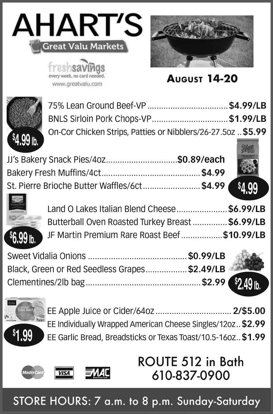 Bath Lions Club- Meets first and third Wednesday at 6:30 p.m. at My Place Pizza in Bath. Guests/new members welcome. Email lionsbathpa@gmail.com with questions. Bath Museum- Open third Saturday Jan-Nov. and first Saturday in Dec., from 10 a.m. to 2 p.m. at 121 S. Walnut St., Bath. Tours welcome, volunteers needed, email bathpamuseum@ gmail.com or message Bath Museum on Facebook.