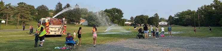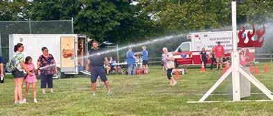 The fire company also hosted an engaging activity where kids got to aim fire hoses and blast streams of water through windows to put out pretend fires made of bright red wooden flames, which was a splashy, spirited way to learn firefighting skills up close.