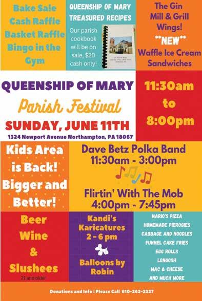 June 1-7, 2023 3 The Home News 255E South Best Ave., Walnutport, PA 18088 Ph: 610-923-0382 • Fax: 610-923-0383 E-mail: AskUs@HomeNewsPA.com Paul & Lisa Prass - Publishers Catherine StrohAssociate Publisher & Editor Tony Pisco - Art Director David Farkas and Robin DenglerDelivery Drivers The Home News ISSN 1944-7272 (USPS 248700) is published every Thursday of the year at a local subscription rate of $25.00 annually; 50-cents per copy on newsstands. Periodicals postage paid at Bath PA and additional entry offices. A General Circulation Newspaper Since 1942 POSTMASTER: Send address changes to: The Home News, PO Box 293142 Kettering OH 45429 The Home News does not assume responsibility for any advertisements beyond the cost of the ad itself. We cannot be responsible for typographical errors. We reserve the right to reject any article or advertisement thought to be offensive or not contributing to the needs of the communities we serve. All opinions expressed by columnists, reporters and feature writers, including letters to the editor, are not necessarily those of this publication, but of the individuals themselves. News items and ads should be submitted no later than noon Monday on the week of publication, or on dates noted ahead of time due to holidays. OFFICE HOURS:Call for an appointment 255E South Best Ave., Walnutport, PA 18088