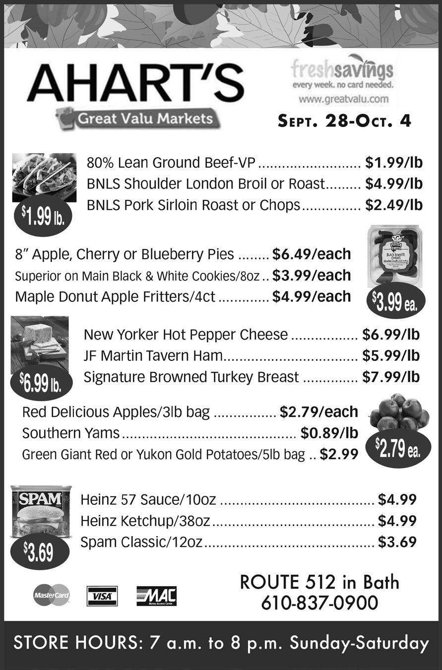 Annual Mayor’s Community Campfire- Saturday, October 14 from 7 to 10 p.m. at Firefighters Memorial Park, Bath. Music, hayrides and more. FMI call 484-281-3628.