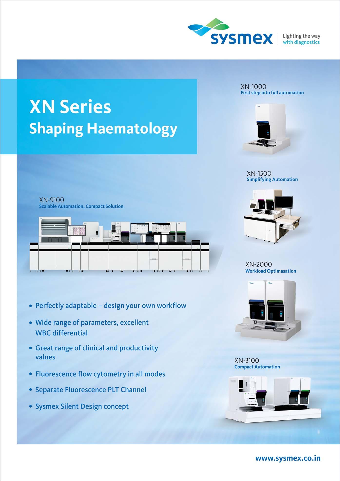 The advanced haematology analyser from Sysmex, a global leader in haematology automation and frontrunner in research and development in Advanced Clinical Parameters (ACP) uses fluorescence flowcytometry in all 5 part differential haematology analysers. Sysmex provides options from standalone haematology analysers to scalable systemisation with integration of various modules like automated cell counters, slide maker and AI enabled automated cell image analysers.