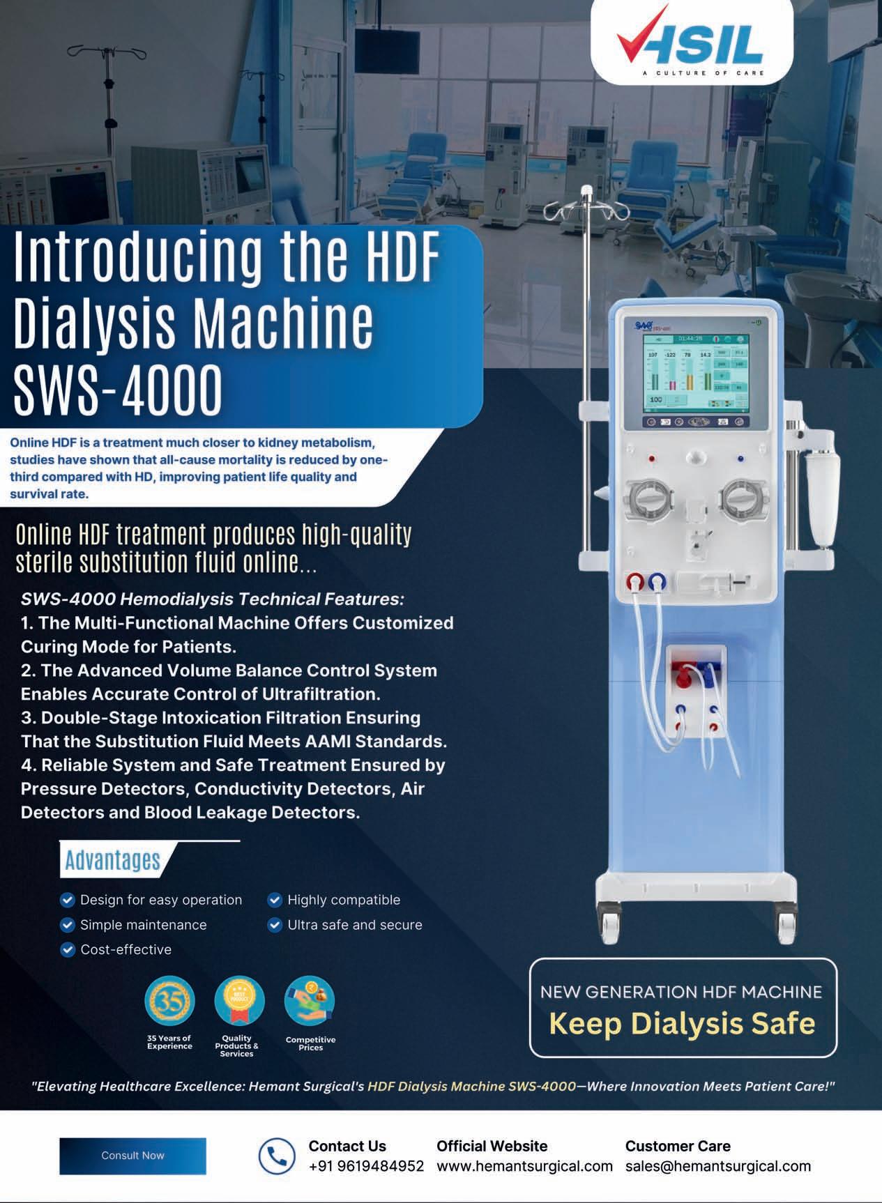 For institutions seeking advanced dialysis solutions with a proven track record of success, the SWS-4000 from Hemant Surgical is the ideal choice. Combining innovative technology, patient-centric features, and robust safety standards, the SWS-4000 sets a new benchmark in the dialysis industry.