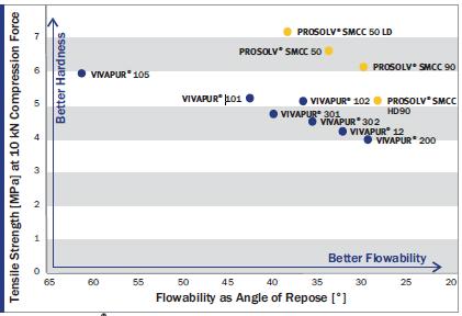 the high-density grades like PROSOLV® SMCC HD 90 shows further improvement in flow properties and lesser sensitivity to the rate of tableting.2