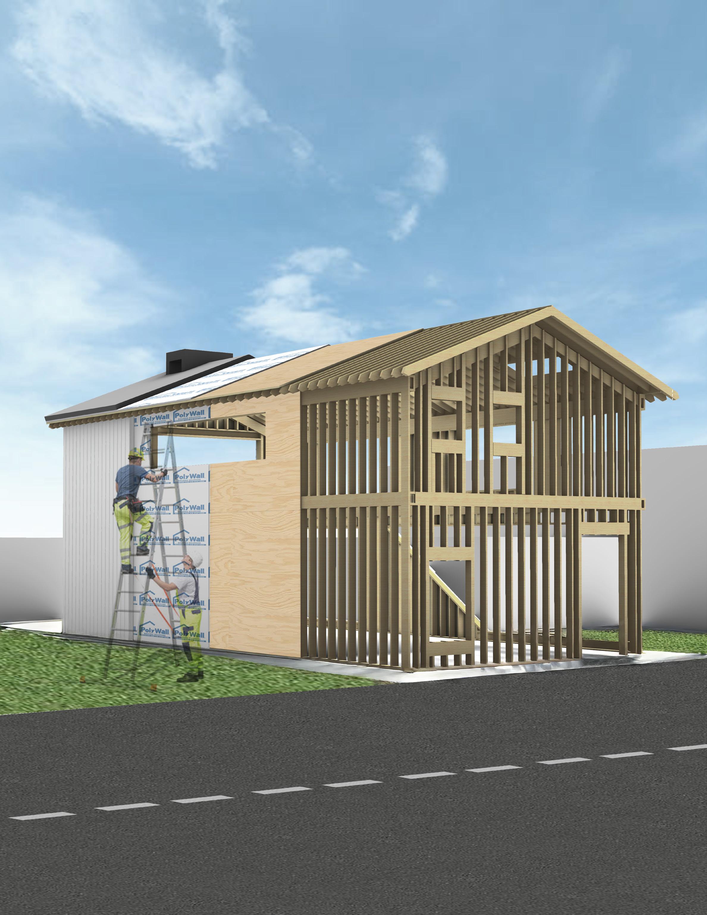 creating solar heat gain. The only nonwood element used in the project was concrete to allow for said conditions. As the temperatures cool, residents open the windows, carrying the hot air outdoors and creating airflow. When this occurs in the building, it resets it for a cool start to the day.