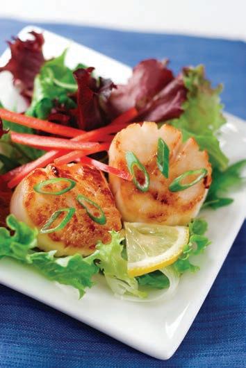 3 jumbo scallops served over fresh spring mixed greens and tossed in a lemon vinaigrette with a drizzle of soy-ginger sauce