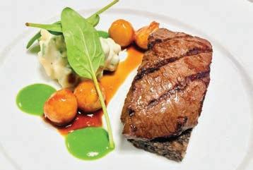 * All our steaks are seasoned with a blend of kosher salt and freshly cracked black pepper. Also available without seasoning. All served with home-made mashed potatoes, seasoned vegetables, and a choice of either red wine reduction, green peppercorn demi-glace, mushroom sauce, or bacon-blue cheese bu er.