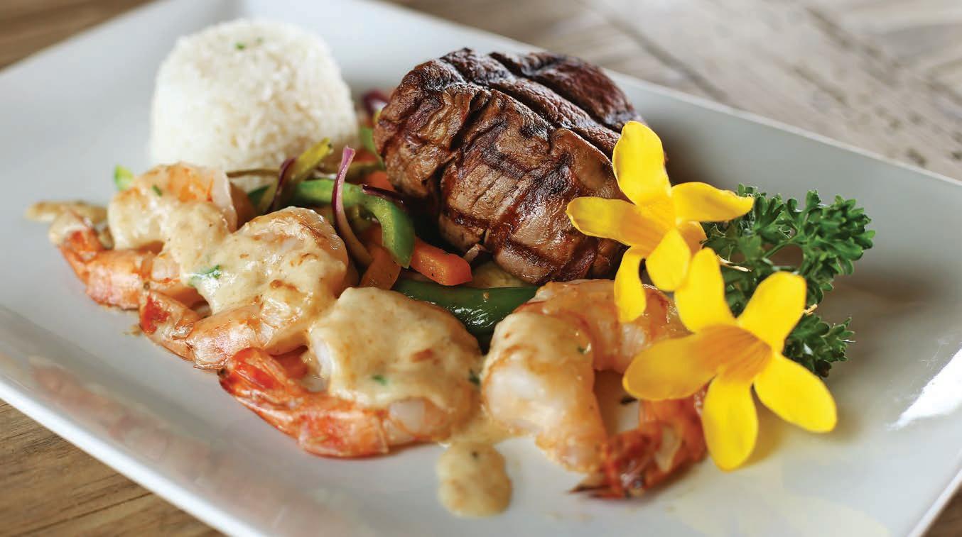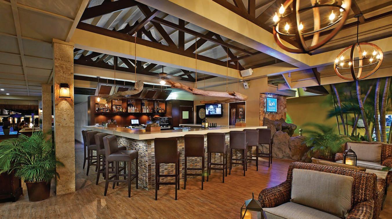 The reasonably priced menu features generous portions and o ers a modern twist on pasta, fresh seafood and steak dishes. You can enjoy breakfast and lunch in their tropical outdoor setting, or cocktails at their stylish bar. Water’s Edge delivers the best degree of relaxation, guaranteed.