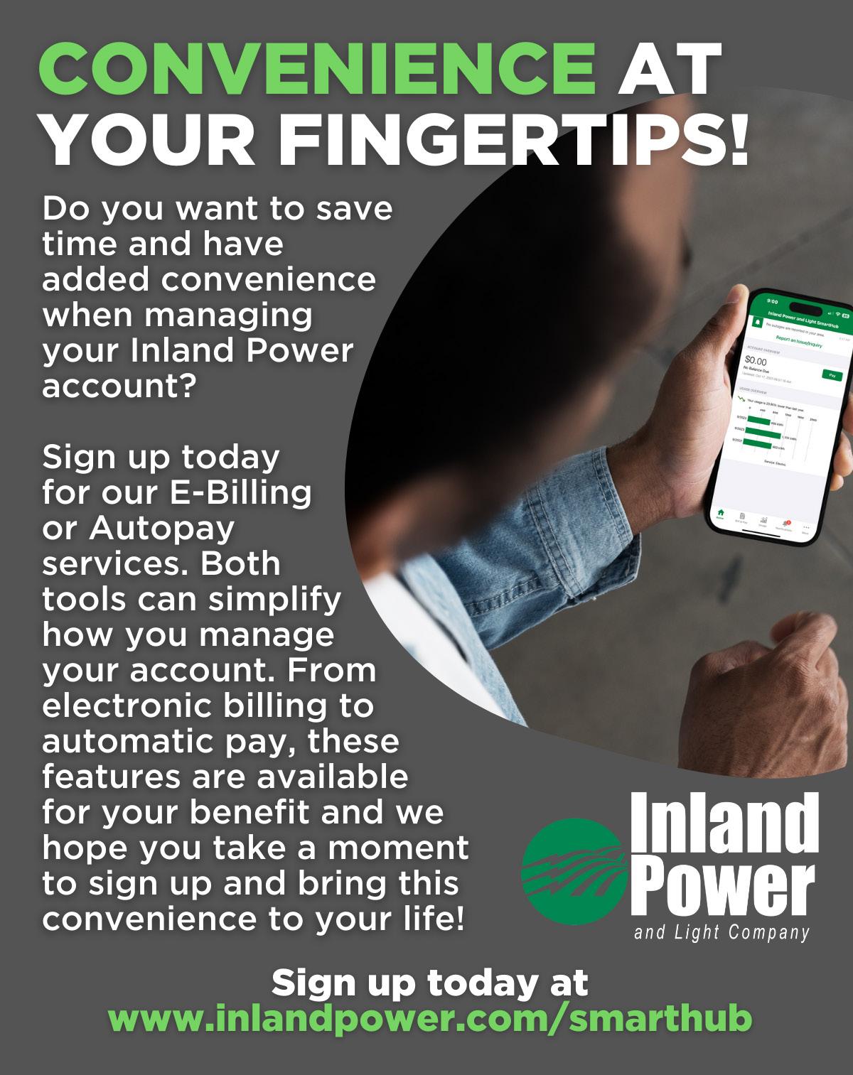 For additional details, please visit our website at inlandpower.com/cash-back, or call your Inland Power member experience team at 509-747-7151