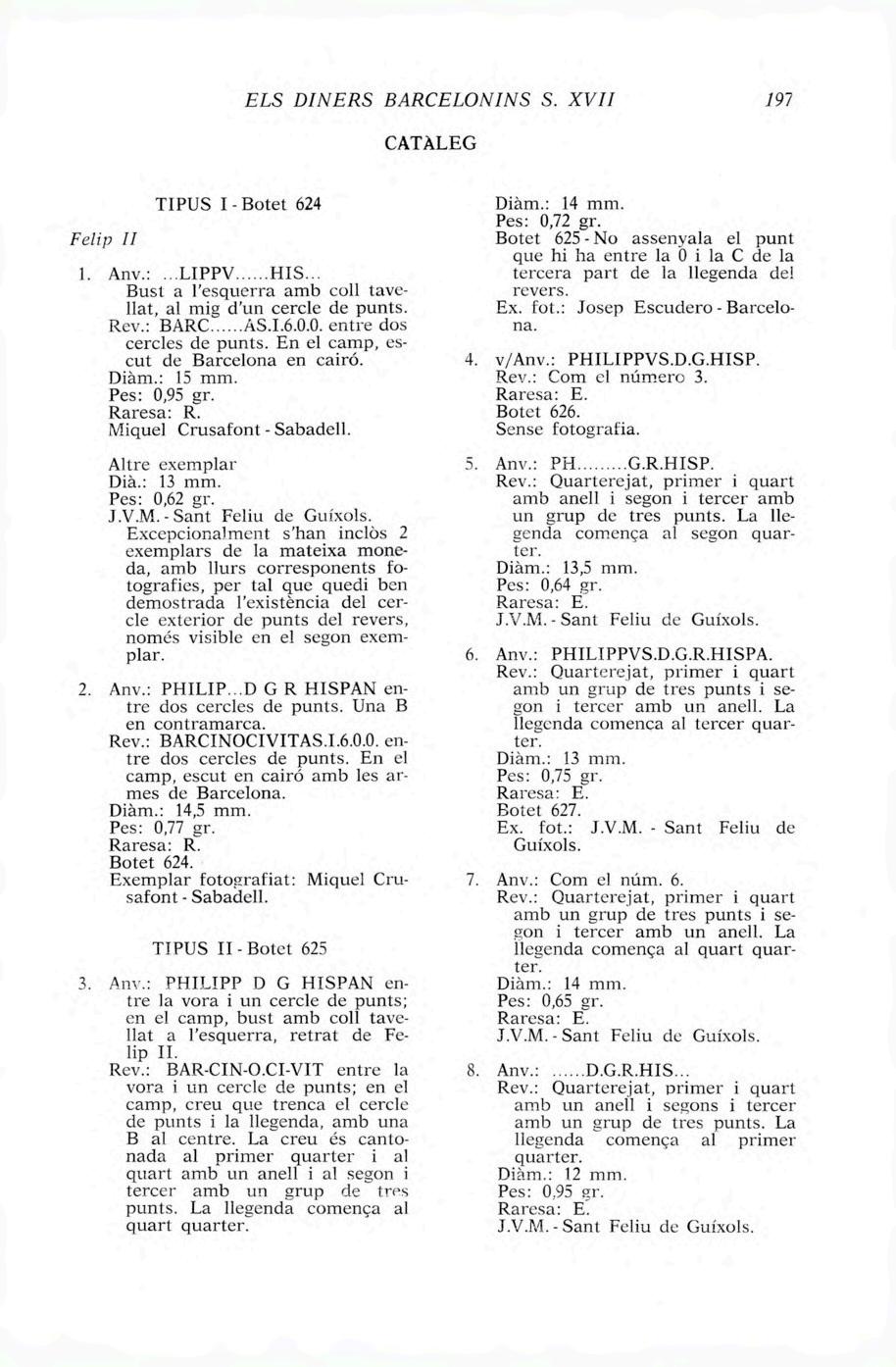 EI cataleg es detalladissim, com ho mostra I'amplitud donada per a la descripci6 de un tipus de monedes que normalment es confia a la simple referencia dels catalegs usuals (Mazard, etc.). ja que la regularitat dels tipus es molt gran.