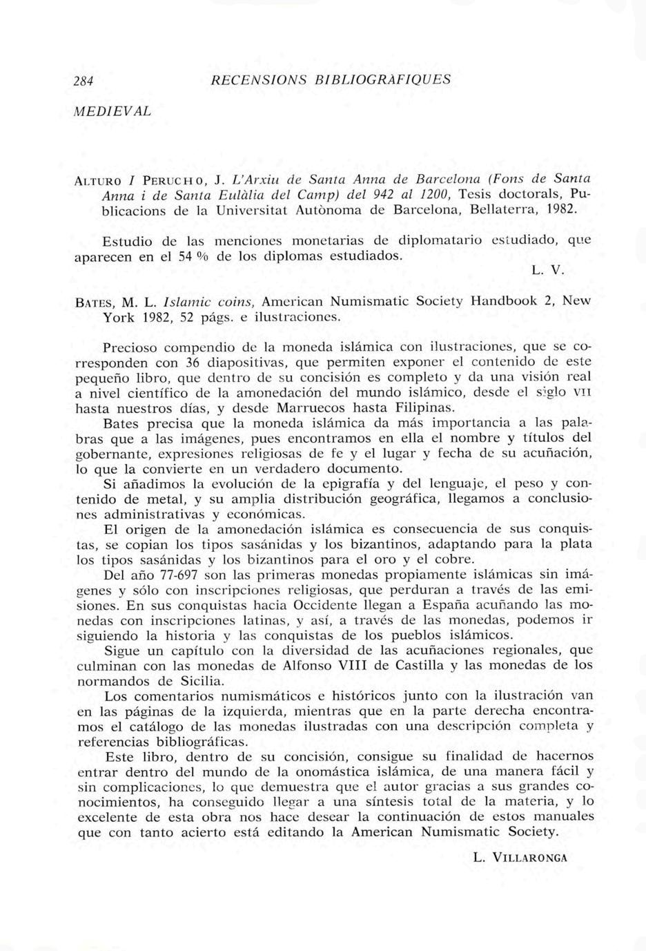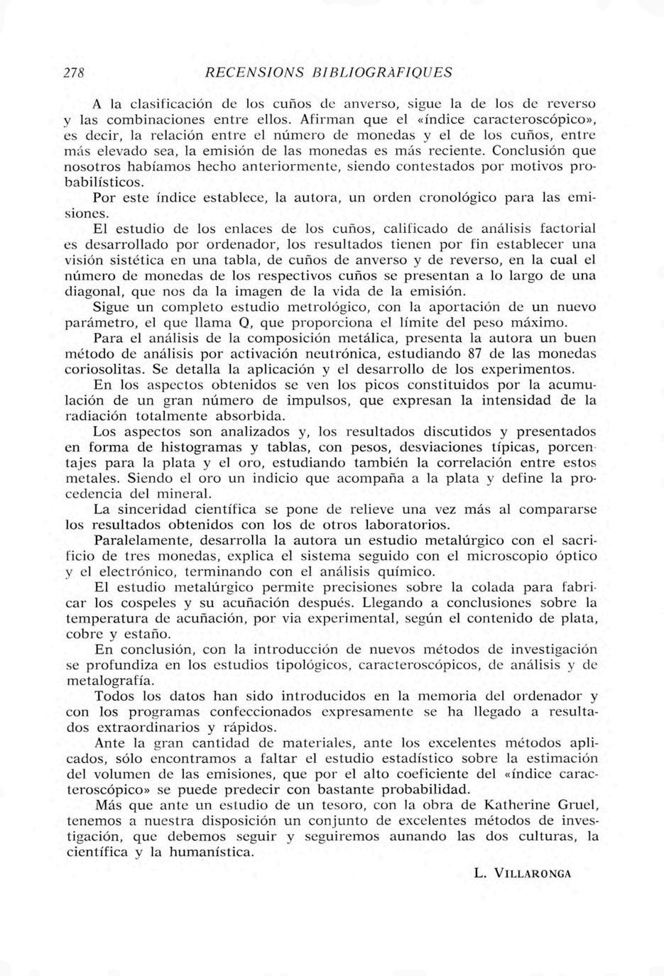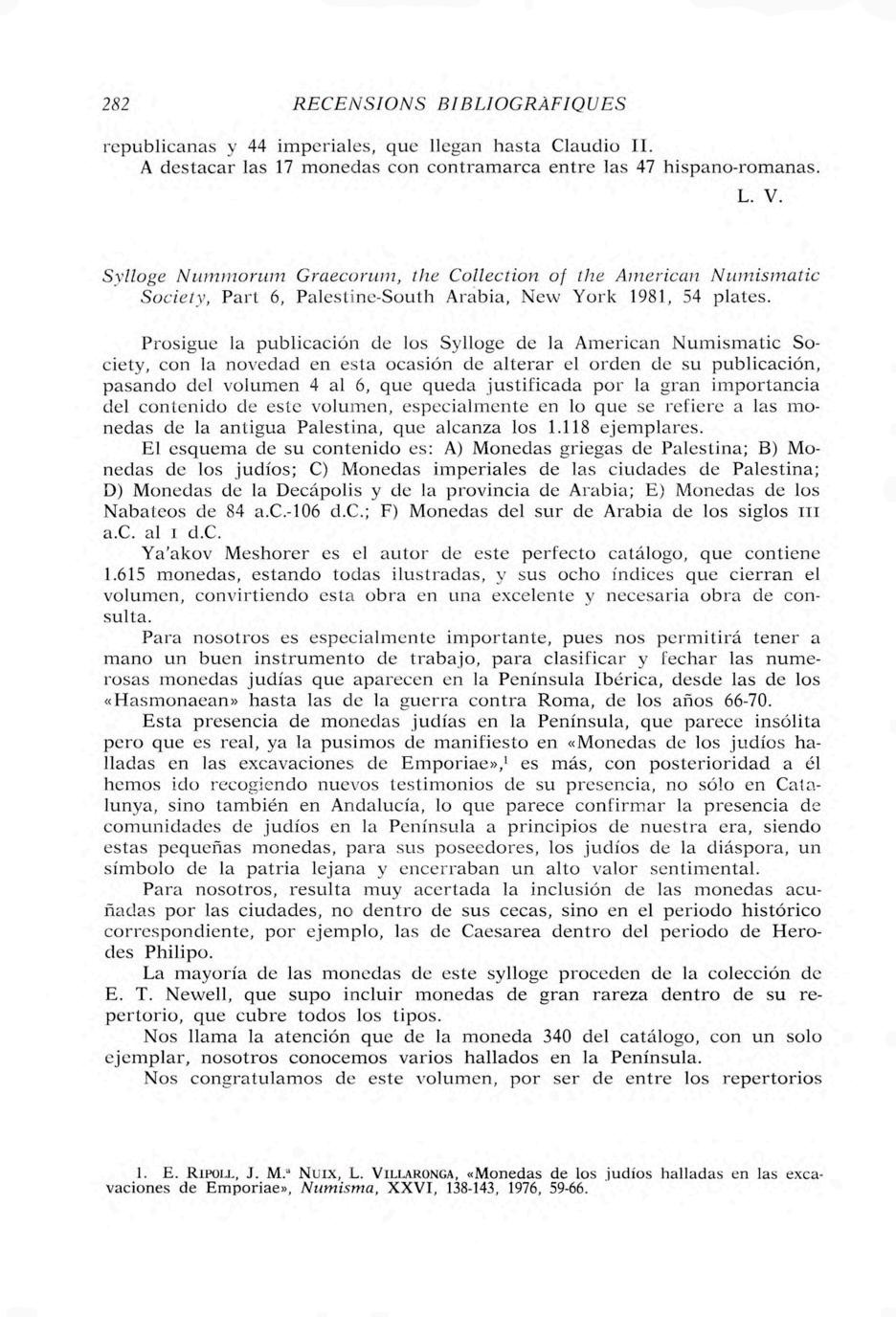 Cal assenyalar amb goig la represa de les publicacions del Gabinet Numismatic de Catalunya, interrompudes durant trenta anys. Es evident que els seus fons mereixen atenci6 i que pod en donar tema a multitud de treballs de la mes gran importancia per a la numisrnatica.