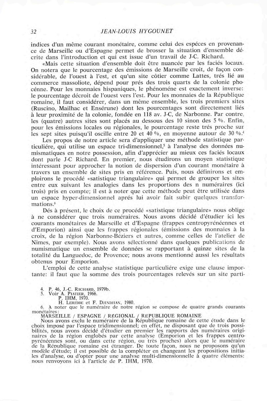 HYGOUNET, J. L. Un exemple d'emploi d'un modele statistique rnultidimensionnel en matiere de numismatique antique 31